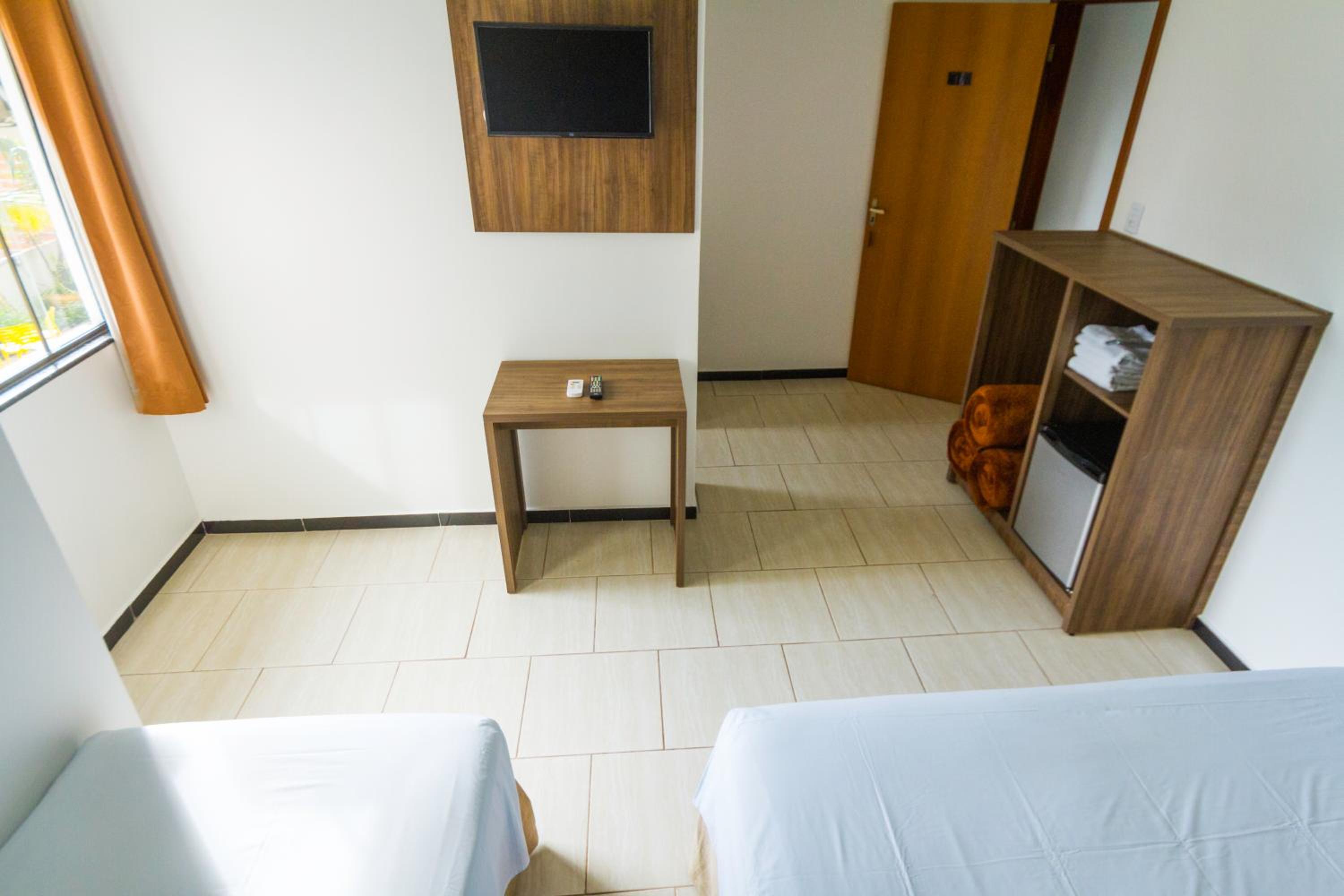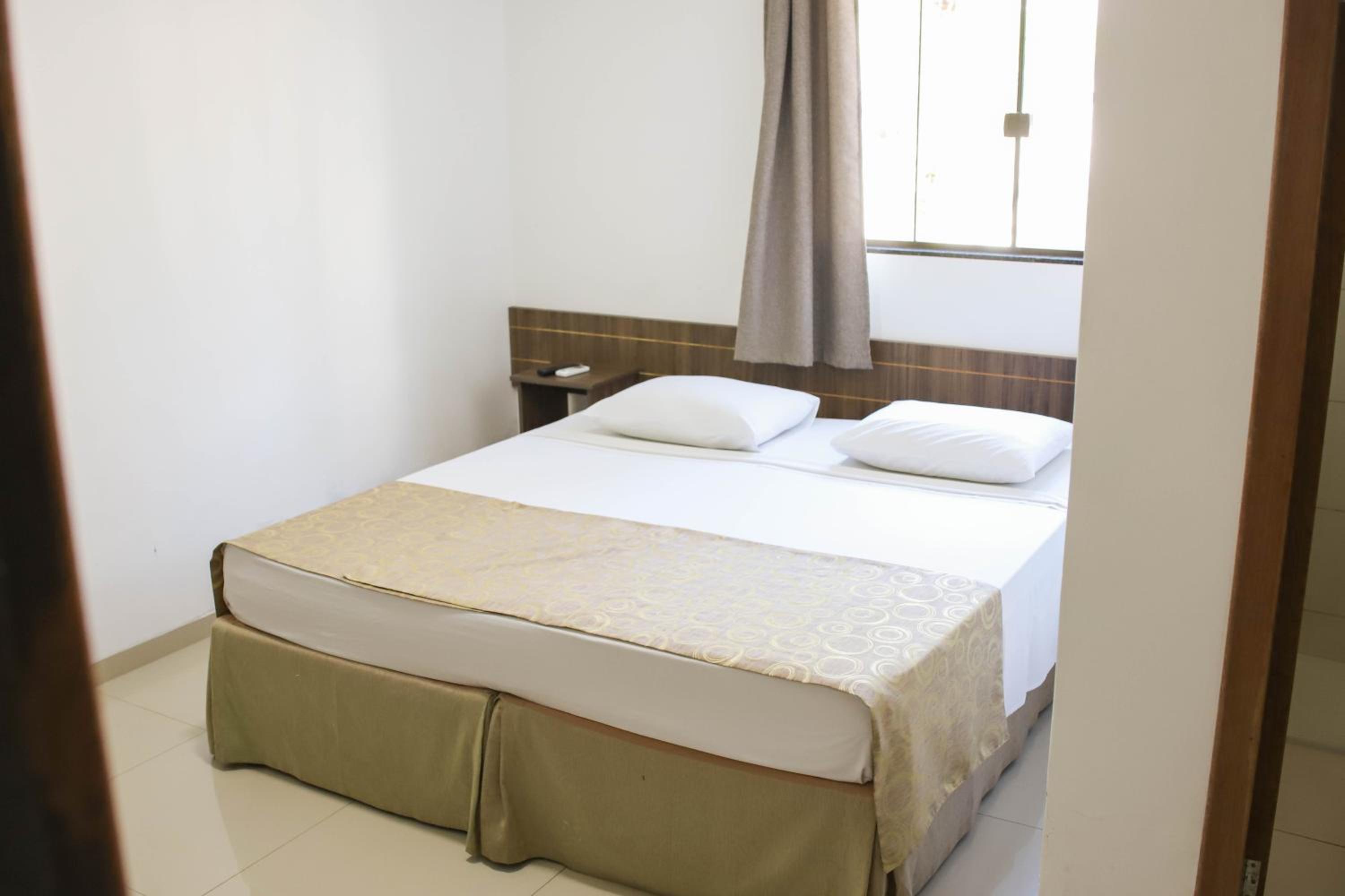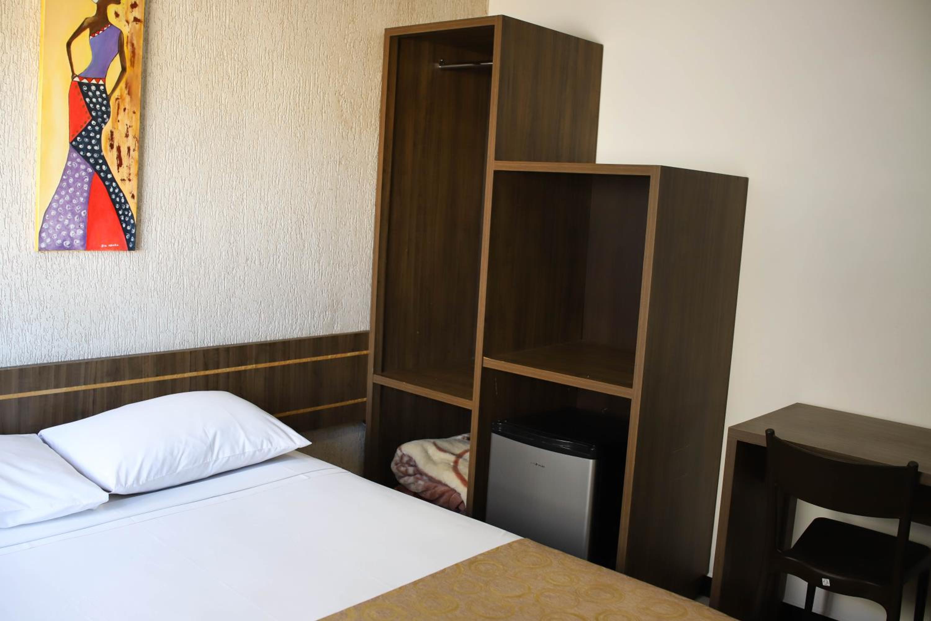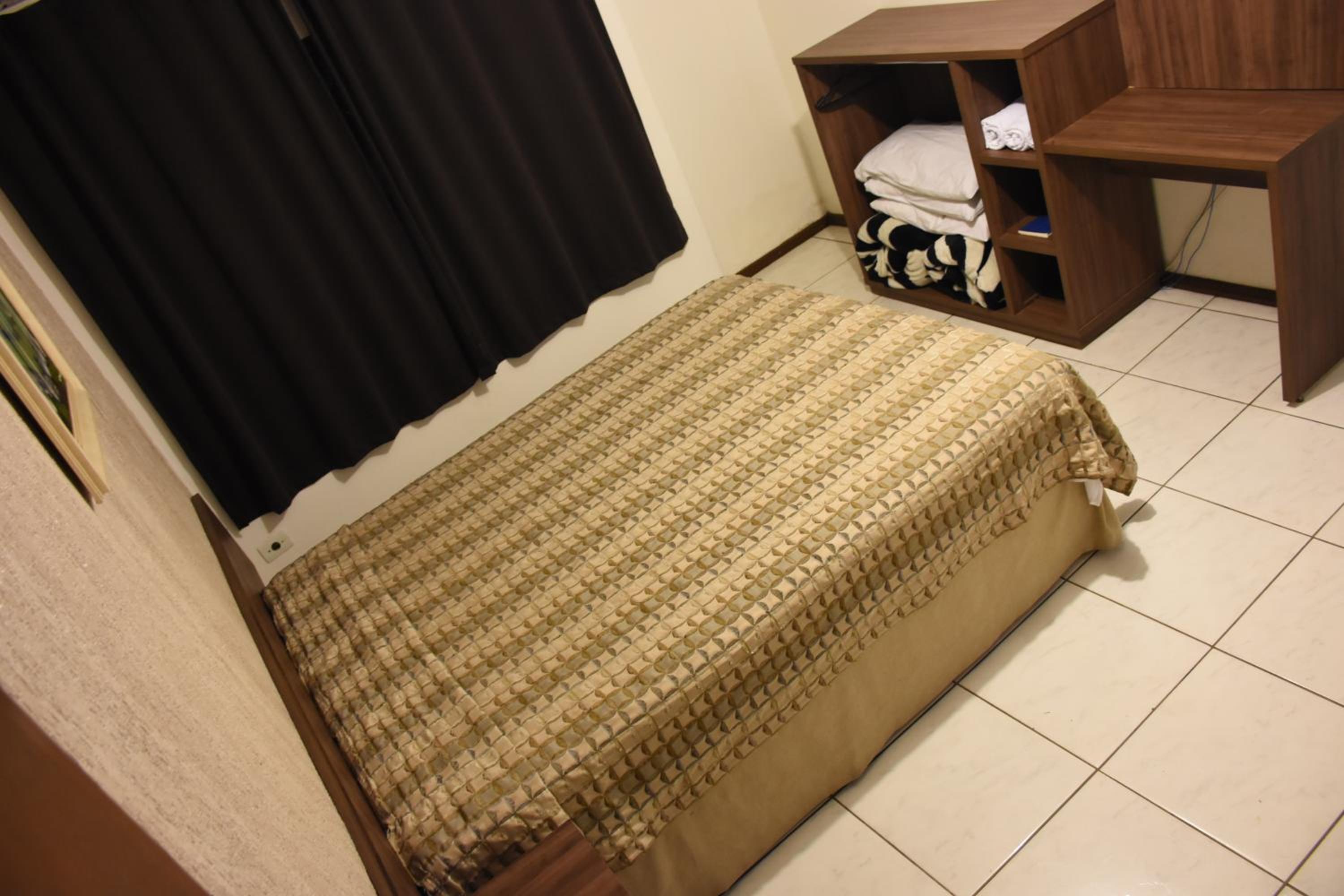 O hotel é bem simples, mas atende para estadias curtas. Cama confortável e roupas de cama limpas