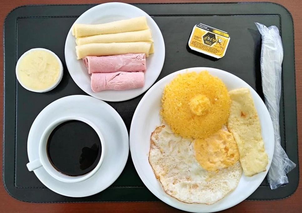 Espaço para café da manhã pequeno e poucas opções.