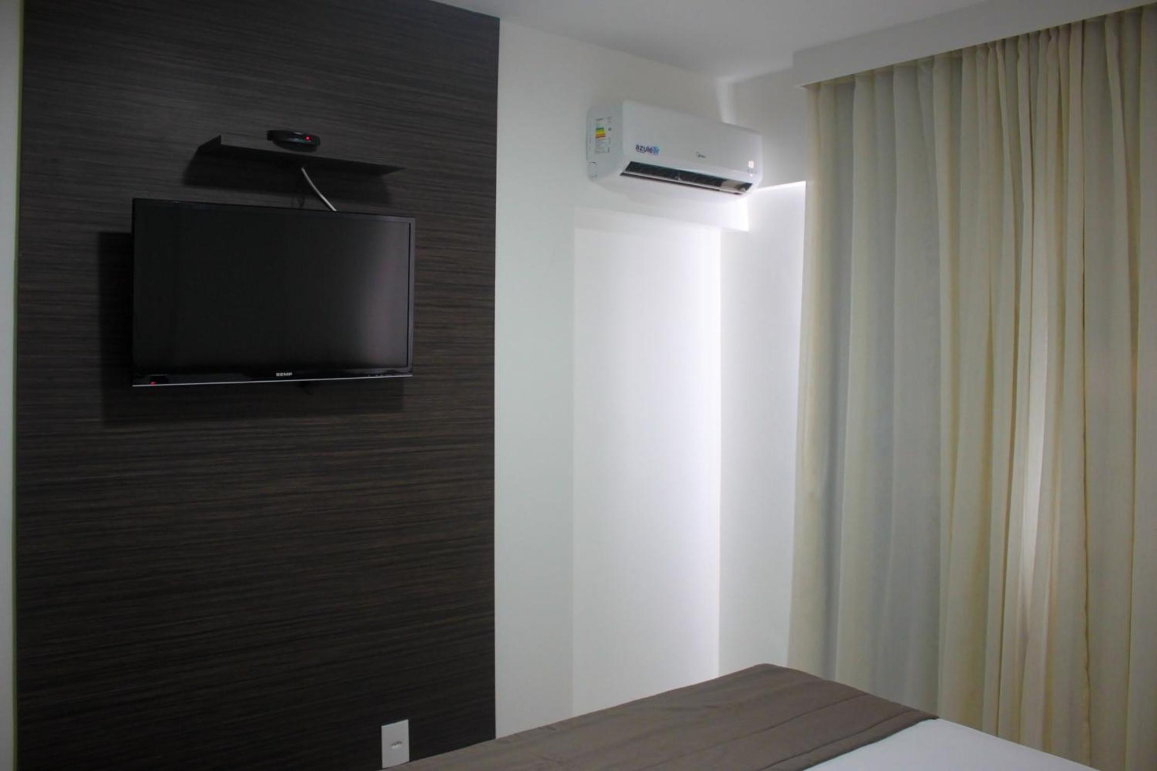 Quarto possui tudo que você precisa (ar condicionado, frigobar, mesa para organizar suas coisas, tv), as instalações do hotel são muito boas, possui piscina e o café da manhã é super completo. Além de que os funcionários são super atenciosos e solícitos em ajudar, um destaque para o Gilberto que é super querido.
