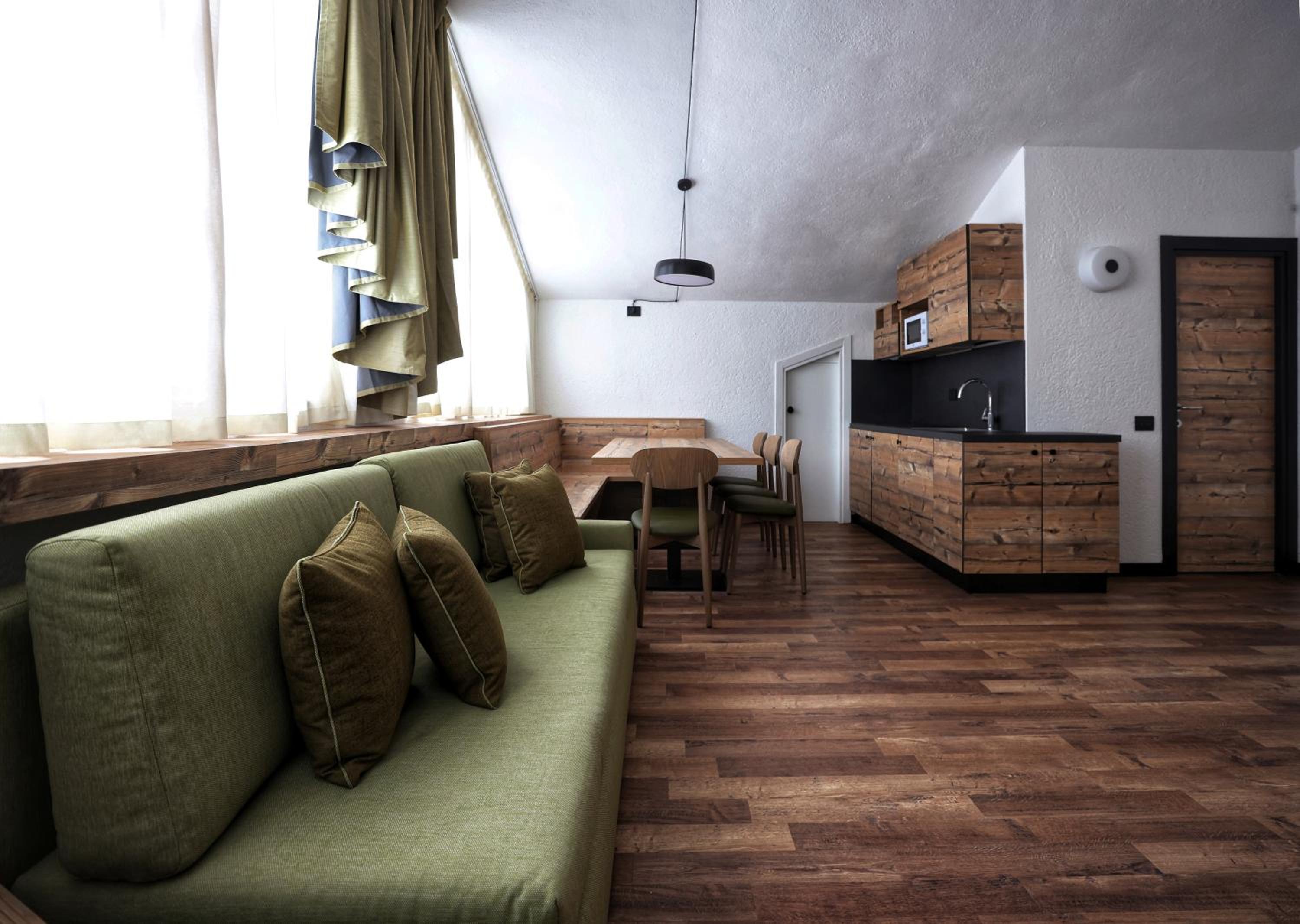 Ottima la posizione di fronte alle piste e comprensorio sciistico bellissimo. Camere molto pulite, comodo il balcone vista piste. Comodissimi i due bagni.