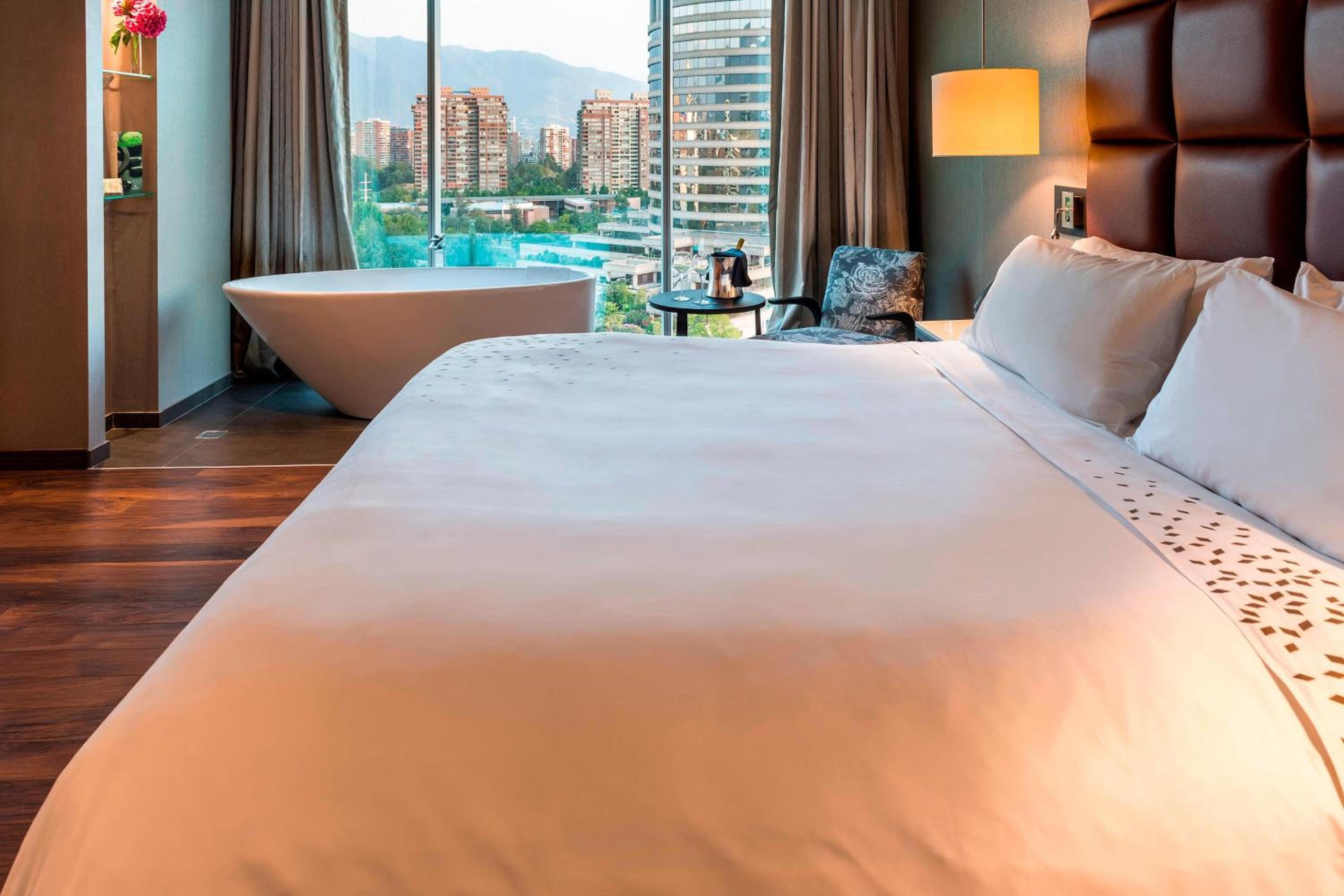 Renaissance Santiago Hotel offers beautifully decorated rooms with elegant carpets, modern art, and stunning views of the city or mountains. Each room is equipped with top-notch amenities, ensuring a comfortable stay.
