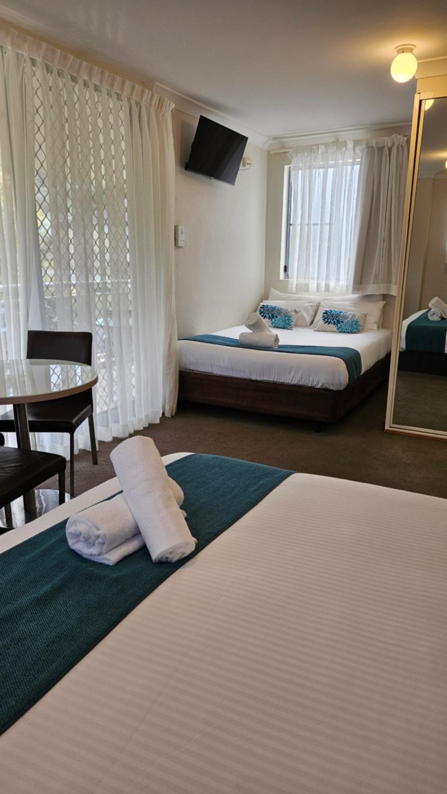 We have stayed at Copacabana Shores previously. Everything we need - pleasant sized room, comfortable bed, kitchen and washing machine (we haven't used), a jacuzzi as well as shower and secure parking at an affordable price. Sure there is no "view" -it looks onto the backs of the buildings in the next street, but still pleasant sitting on the balacony in the sun overlooking the pool and only a short walk to the beach. Copacabana beach is lovely and never crowded; the place itself is quiet (cafes open during the day but very little at night) but only a short drive to Avoca (try Saltwater Bar and Bistro) or Terrigal if you are craving more choice and action.