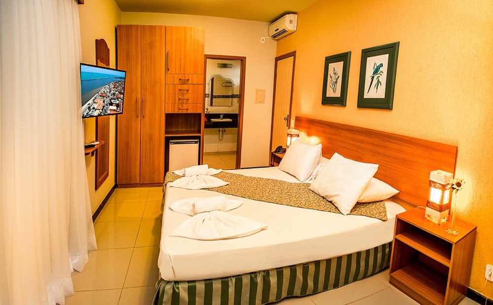 O ponto mais positivo do hotel, na minha opinião, é a localização pois fica bem próximo a praia de Taperapuan. Os funcionários são extremamente educados e a limpeza do local é excelente. Ficamos em um quarto muito confortável com ar condicionado, frigobar, TV e uma varanda com vista para a piscina. A cama de casal é bastante espaçosa além da cama de solteiro.