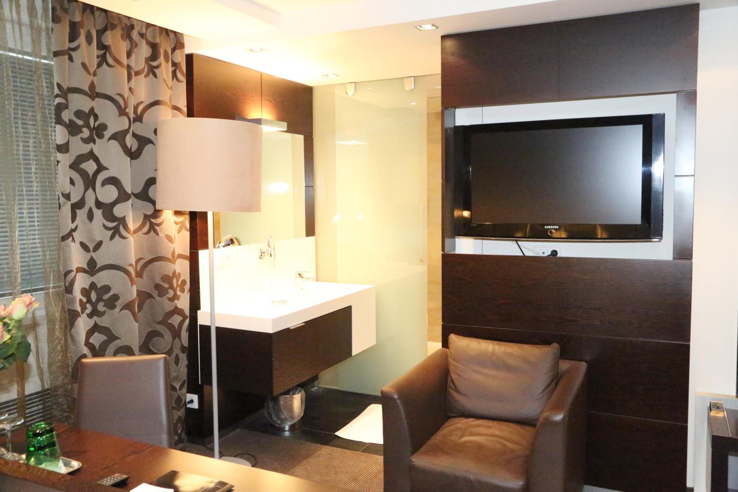 The hotel boasts spacious and luminous rooms equipped with luxurious extra-long beds, LCD flat-screen satellite TVs, and modern private bathrooms, ensuring a relaxing stay for guests.