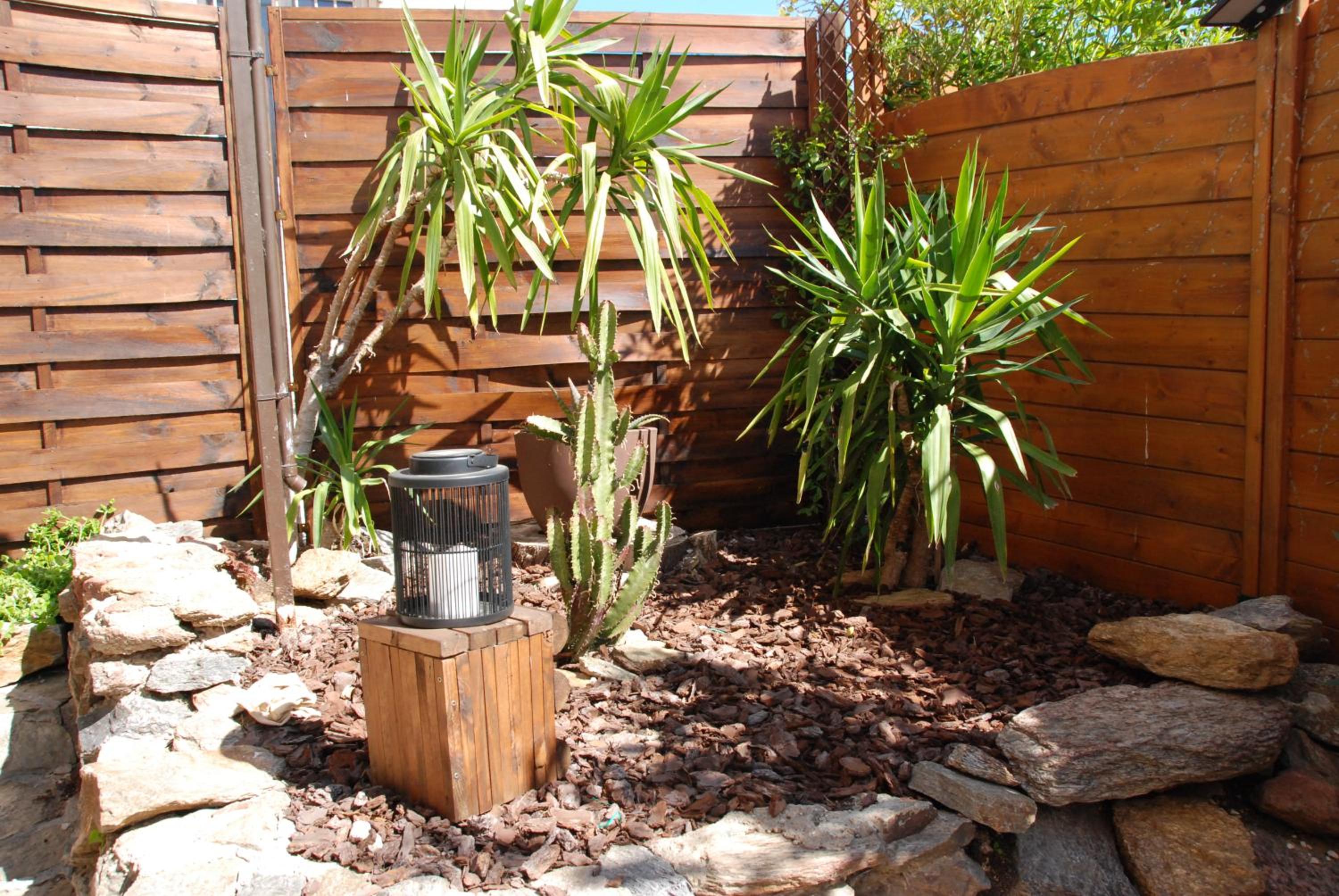 Nous avions un petit appartement avec un petit jardin. Une petite cuisine: deux plaques, un grand frigo,un toasteur , une bouilloire et une machine à café.