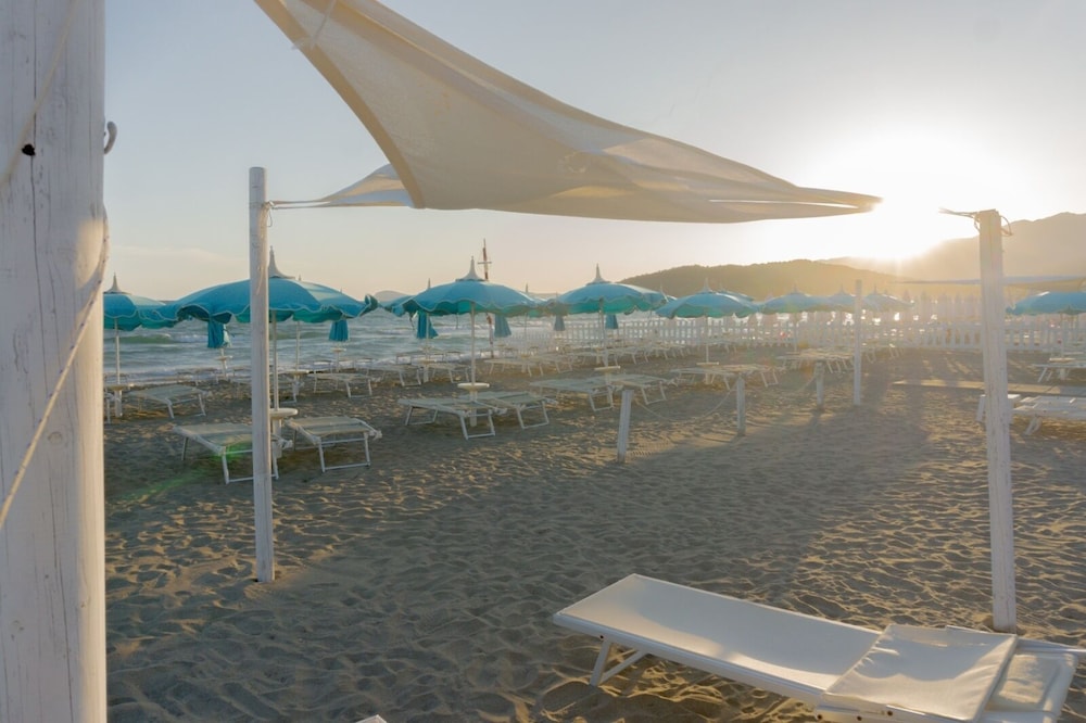 I stayed one night here on my travels through Italy. I chose it for the location & pet-friendliness and was SO impressed! It was directly across from the beach and they even had a little welcome kit for my dog! The room is super small but perfect size for us overnight- plus there was a balcony with seating. They required room service because of my dog, which i preferred breakfast on the balcony anyways. Service was fantastic and there was a section of the beach set up for having a dog. Parking was behind the building in a lot with a locked bar you had to open and close yourself , but it was only 5€ and felt pretty safe. They don't want you to leave your dog alone, so that was a little inconvenient, but I had a car and it wasn't too hot so I could get around with her while I had dinner. Overall a great stay!