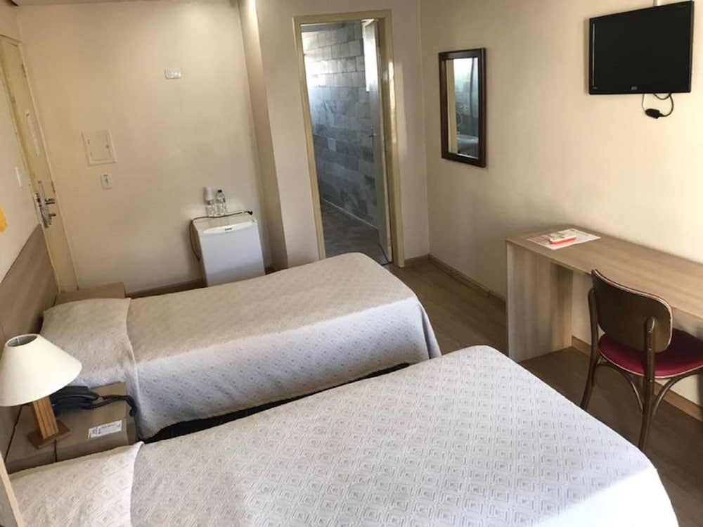 Quarto velho, cortinas sujas, lençois encardidos, coberta muito fina e com aspecto de suja, toalhas encardidas, o aparelho de ar condicionado antigo, para ligar precisava acionar o disjuntor, não tinha como regular, e extremamente barulhento, era um dia bem frio, mas não tinha como deixar ligado por causa do barulho, que causava dor de cabeça e não tinha como dormir, televisão sem opções de canal, com antena analógica. Acabei não tirando foto, mas era horrível, o ar pingava no corredor do hotel, é até difícil de explicar, é um aparelho velho daqueles de janela, instalado encima da porta de entrada.