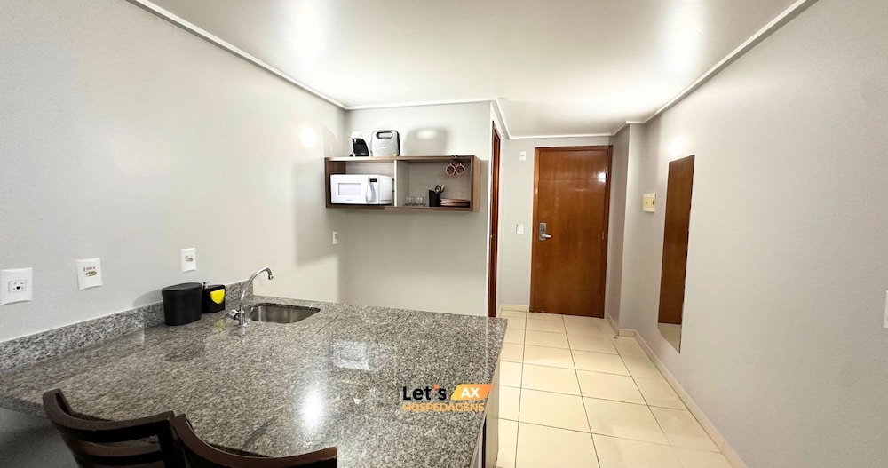 Flat bem equipado, bastante espaçosoe aconchegante, áreas comuns em boas condições.