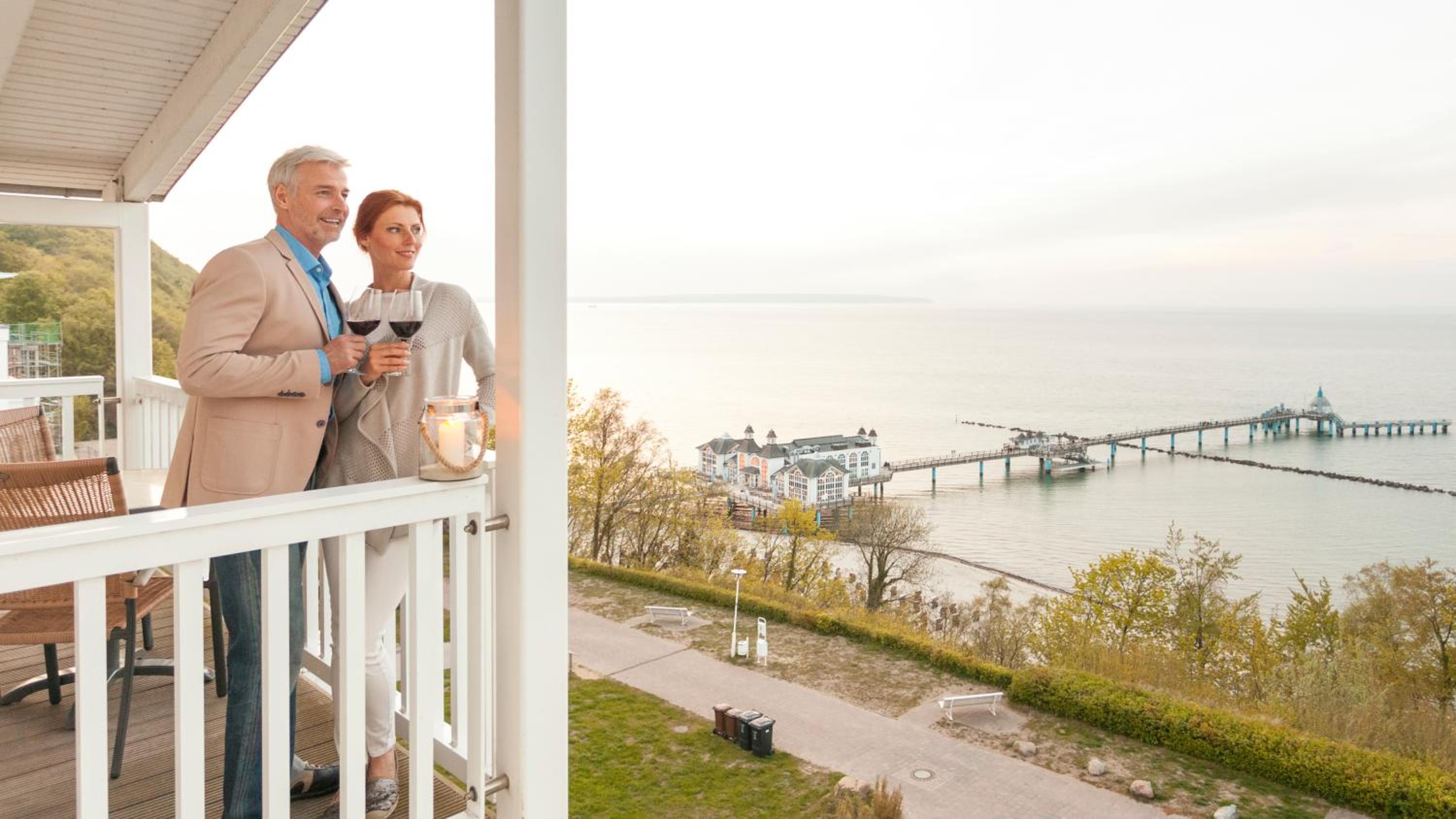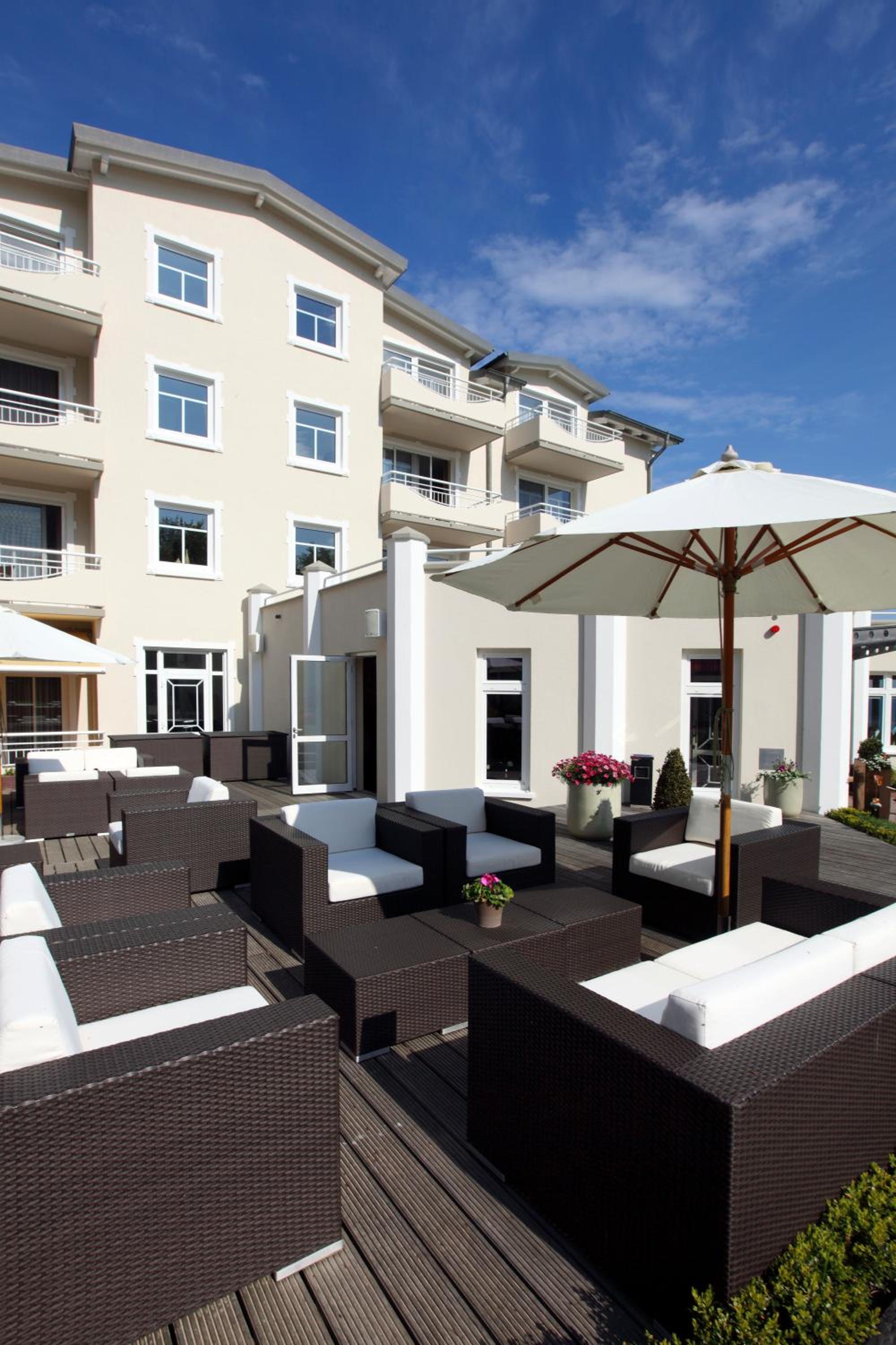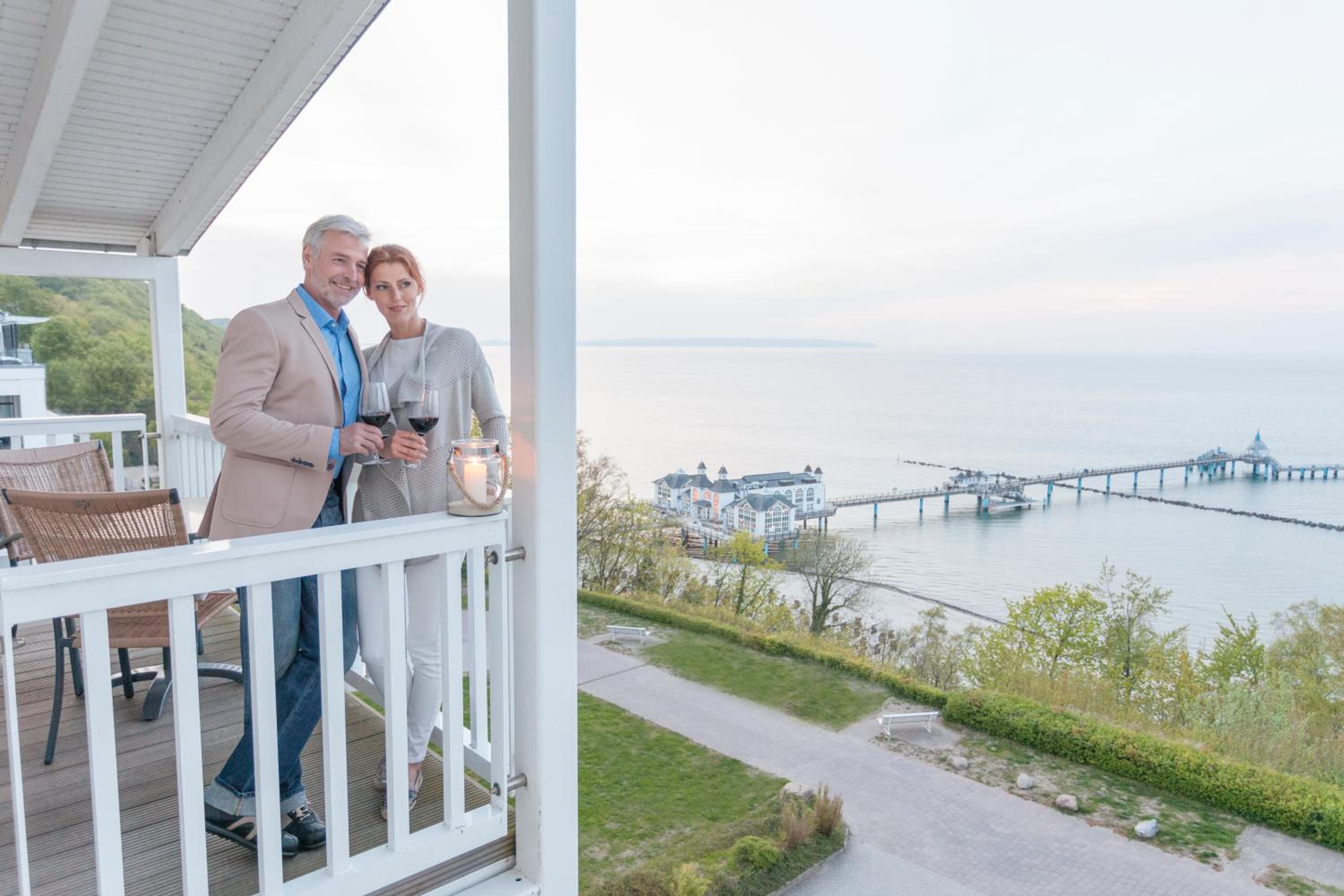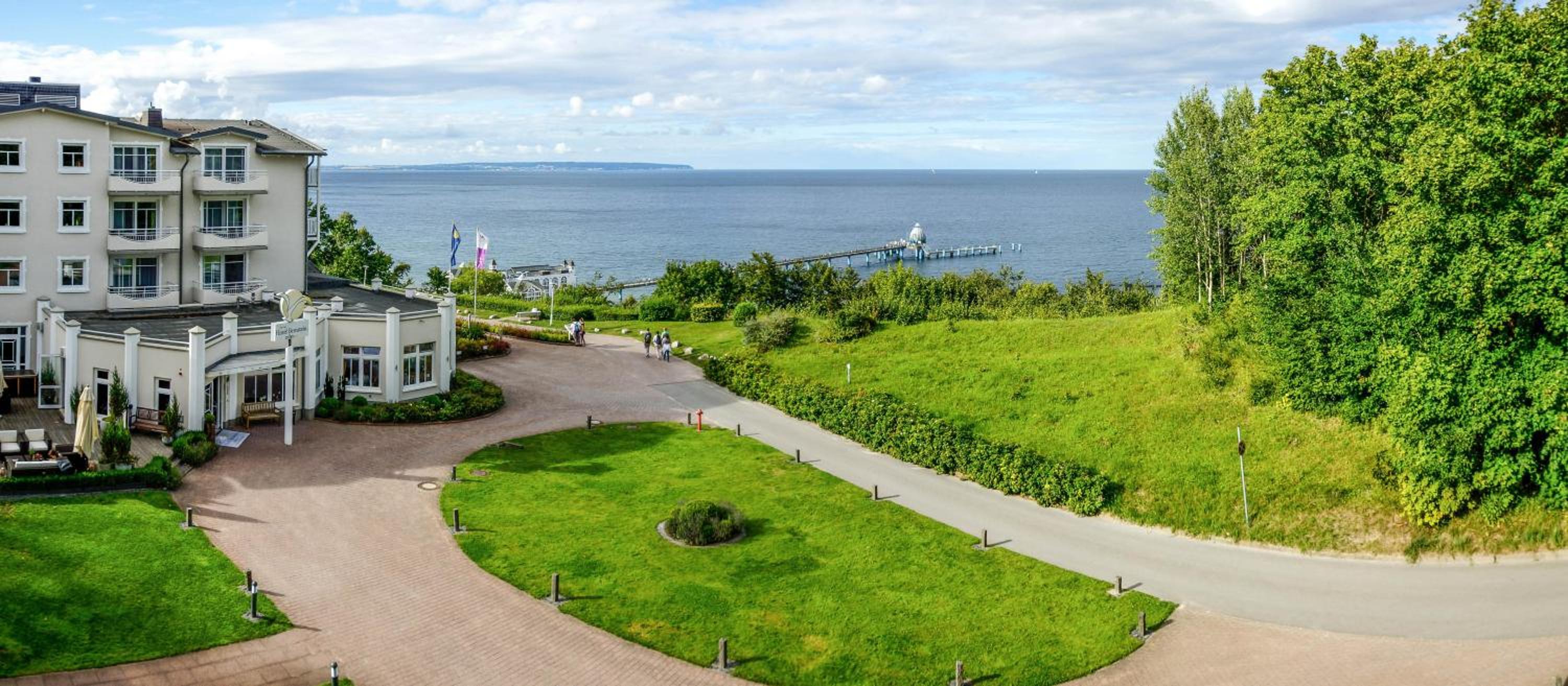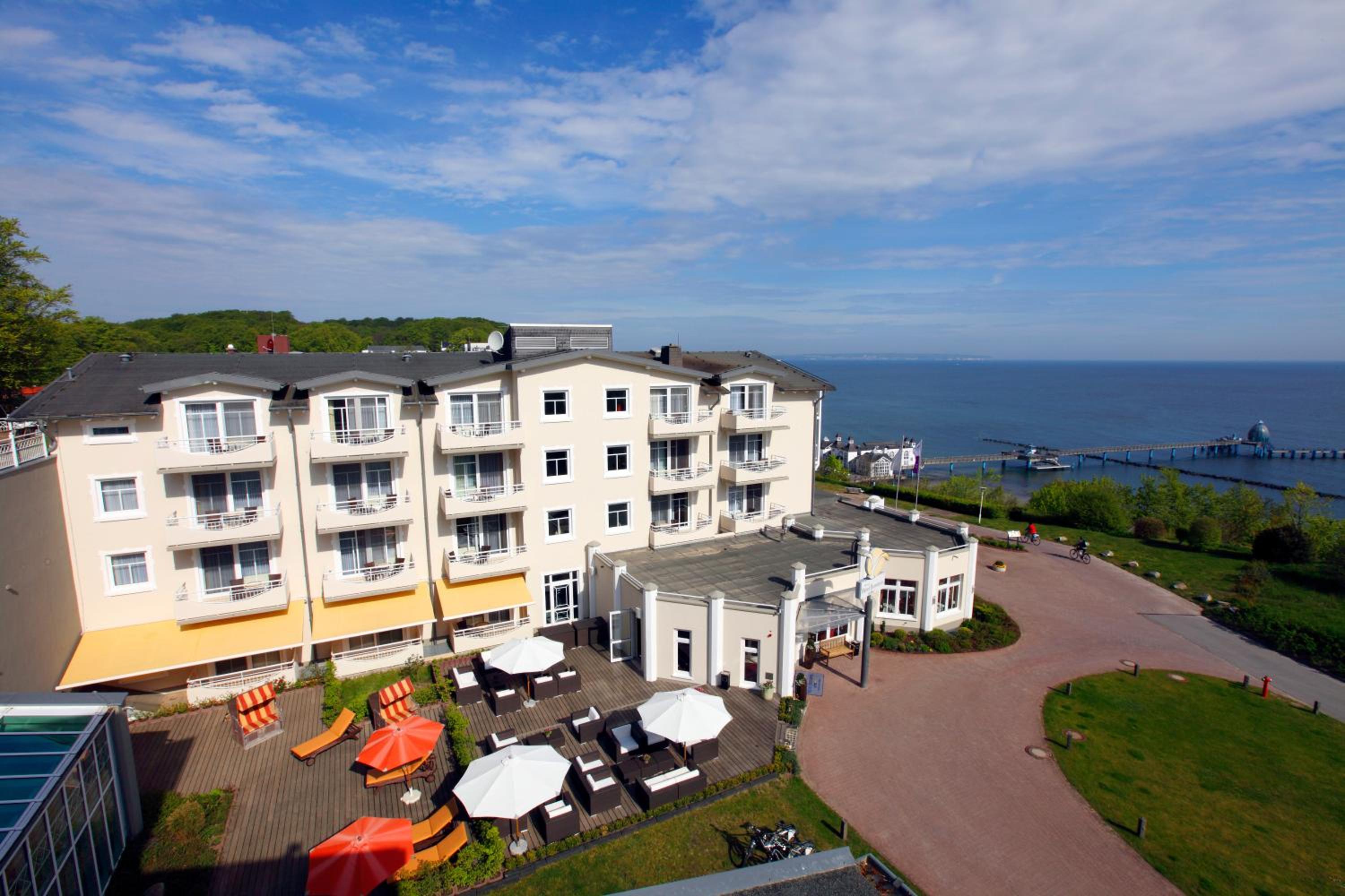 The hotel, perched above the Baltic Sea on Rügen island, boasts a sprawling 750 m² spa with a pool, sauna, steam room, and a tranquil sea-view relaxation area.