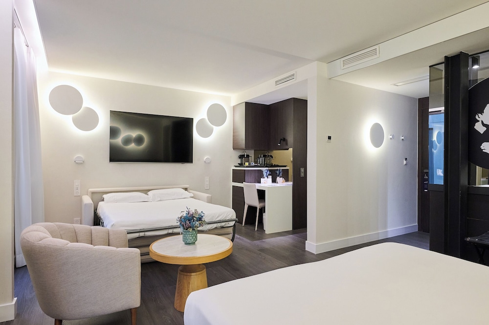 Lovely hotel overlooking a marina and a 10 minute uber ride from Cruise port. Check in was excellent, friendly and efficient and offered a glass of cava whilst checking in. Room was modern and clean, love the bedside tables….very arty and the whole cube lights up. Bathroom, although dark lighting and gloomy tiles actually acted as a modern seductive area. Amenities fab. Staff fab. Breakfast is amazing, all the continental section and the waitress asks what you’d like to order from the menu so all cooked fresh, and it was just perfect. Highly recommend this hotel.