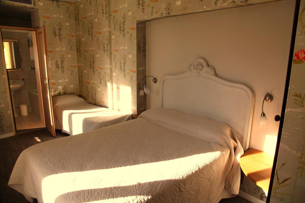 Charming building with historical architecture and fixtures intact. Air conditioned room and they have an elevator. Breakfast served daily. Location ideal for me. Metro nearby, safe, walkable neighborhood. Comfortable bed.