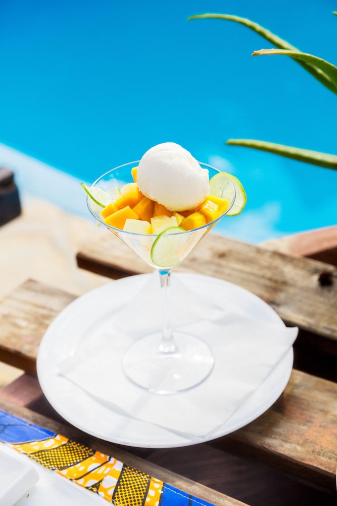 Start with the hotel was beautiful! I was walking with a complementary juice. The staff was so nice and welcoming to me and they took my luggage and show me my room and later I had dinner which was amazing and their breakfast is also good. I only stayed for one night but it was a wonderful experience. The property has amazing views and a great to sun bathe. Definitely a Top stay in the Zanzibar area!