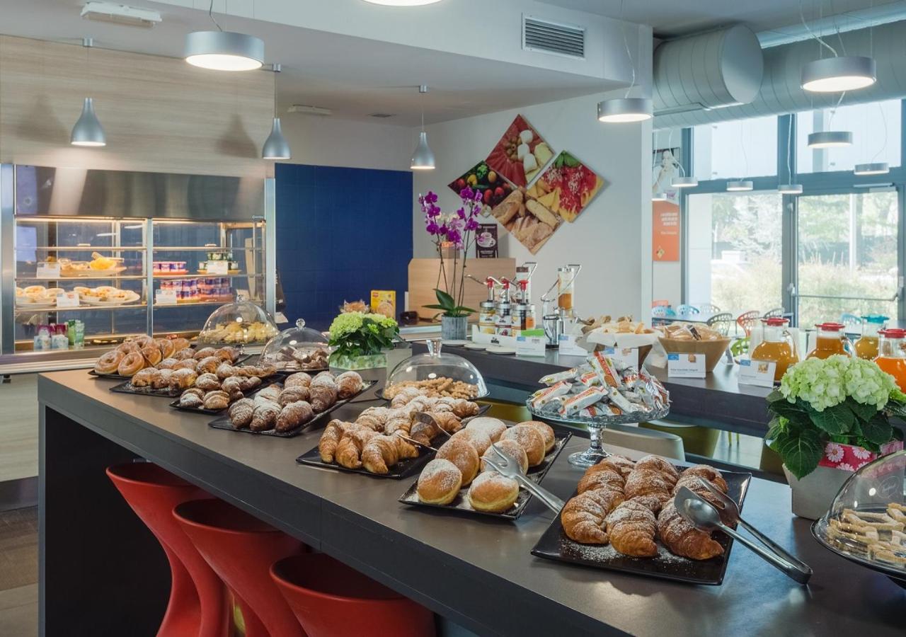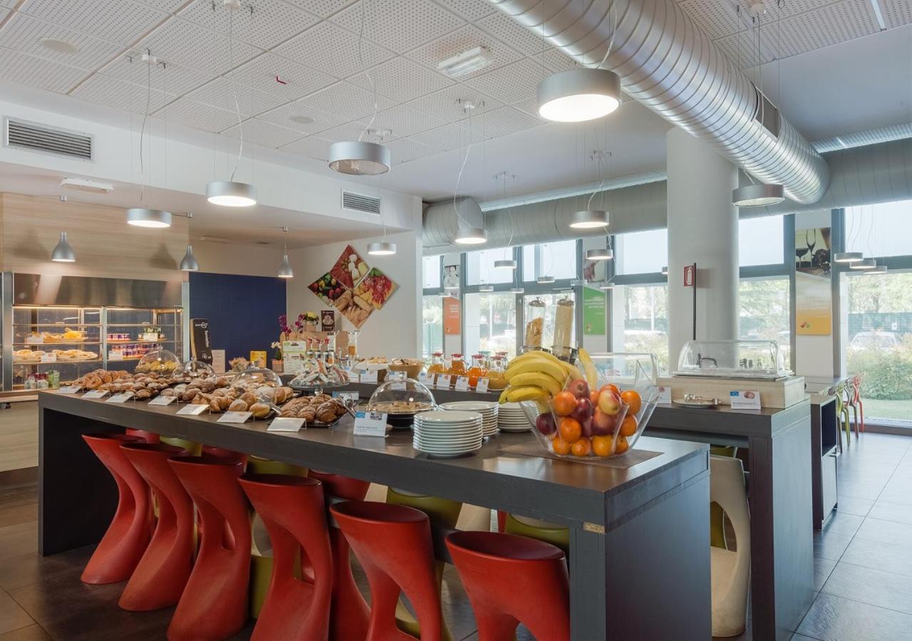 Breakfast is sweet and savoury and served in a buffet style. It includes croissants, eggs and bacon, and fruit juices. The self-service restaurant specialises in local and classic Italian dishes.