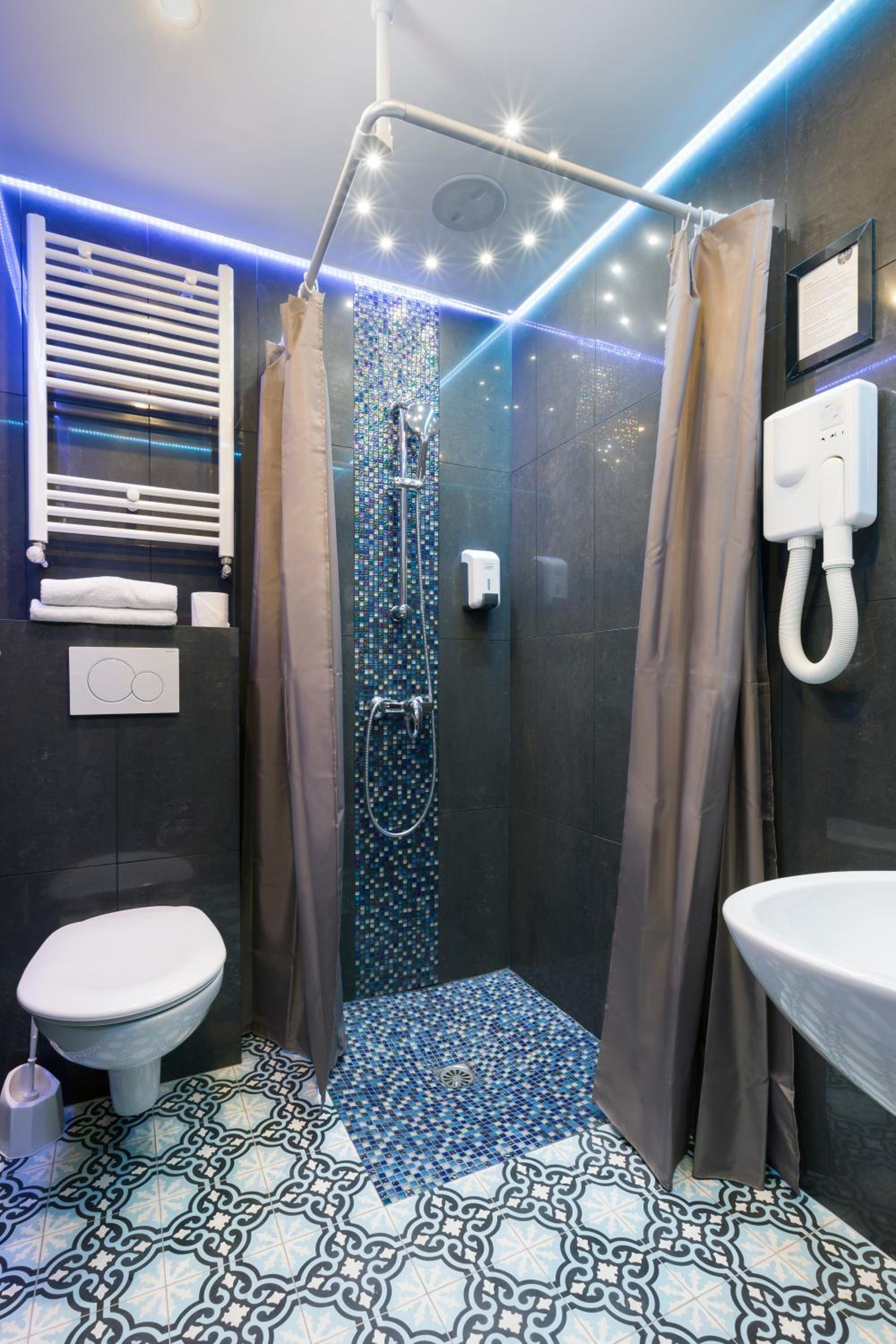 Each air-conditioned room at the hotel is thoughtfully equipped with modern amenities such as a flat-screen TV, safety deposit box, and a cozy wardrobe. The en suite bathrooms offer the choice of a relaxing bathtub or a refreshing shower.