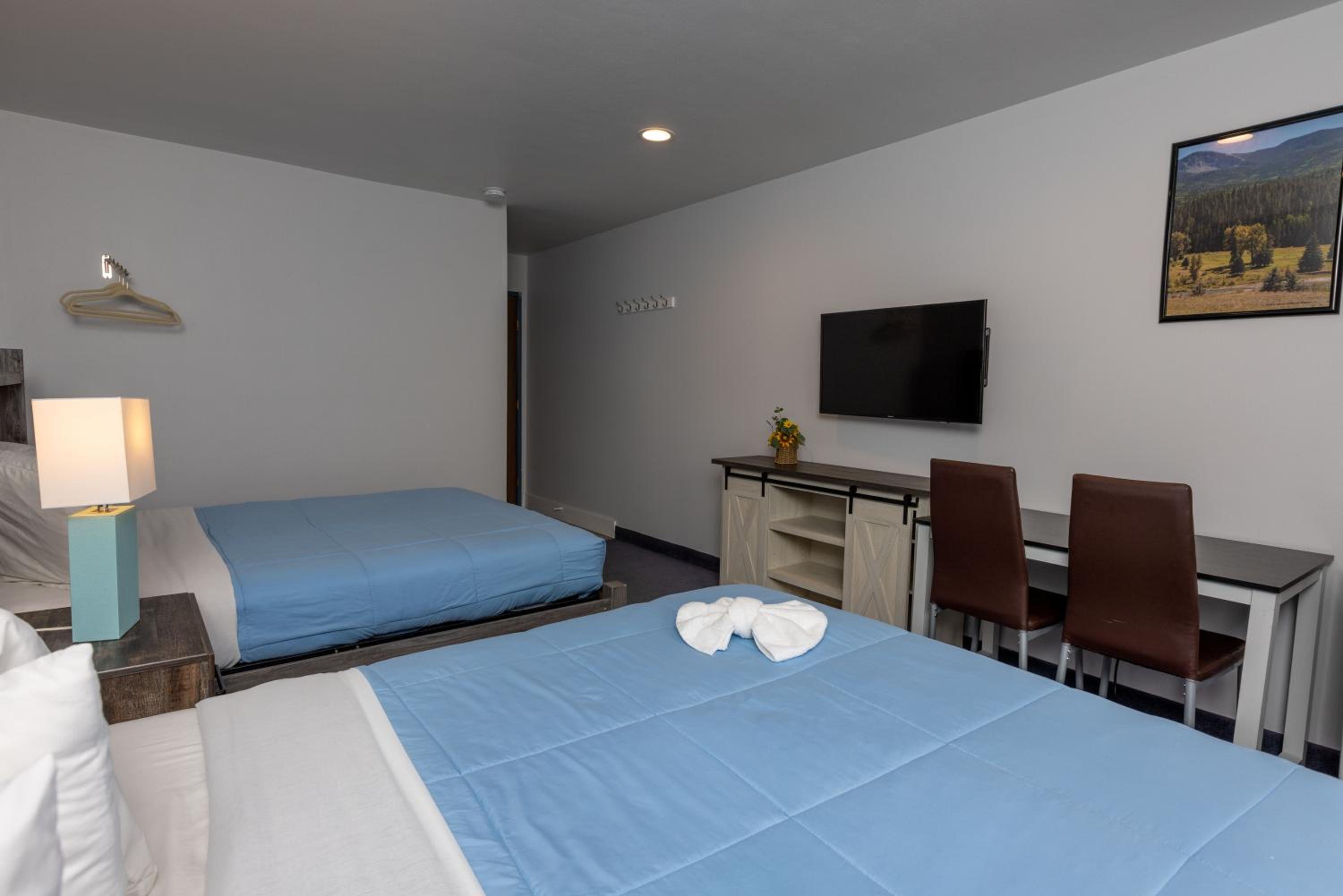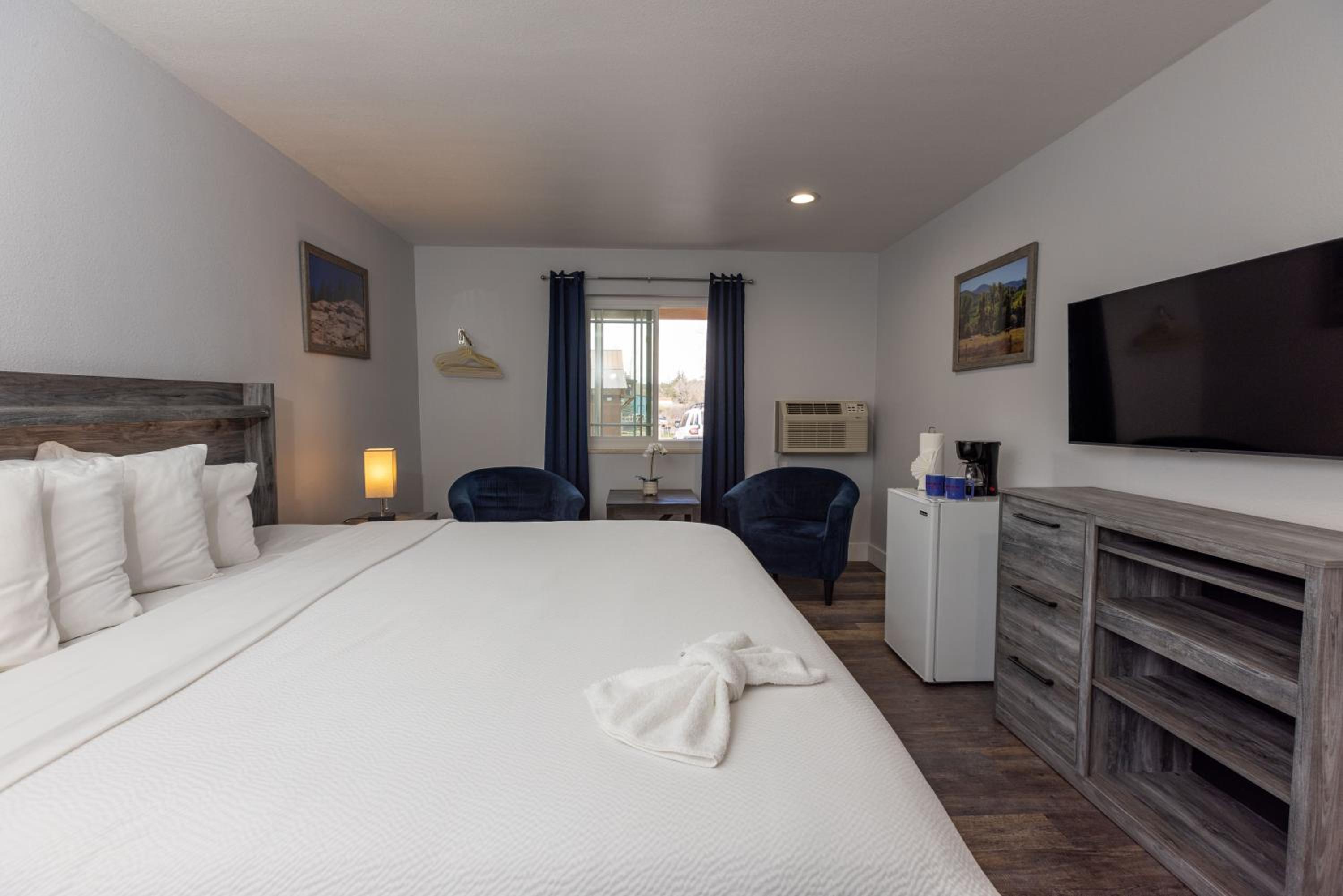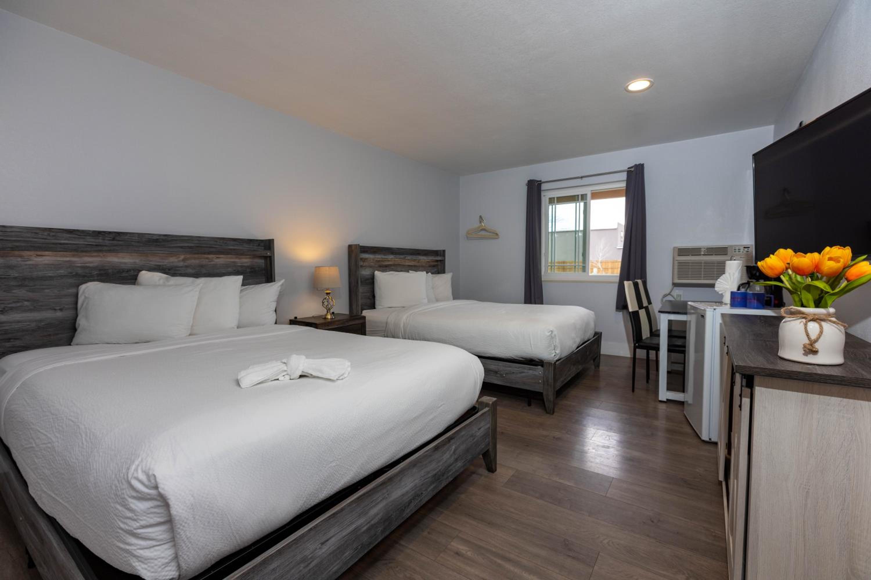 Comfortable Accommodations: Each room is thoughtfully furnished with a coffee maker, refrigerator, and a TV with 26 cable channels. Choose from King Bedrooms with a cozy sitting area or Double Queen Bed rooms with a convenient work desk.
