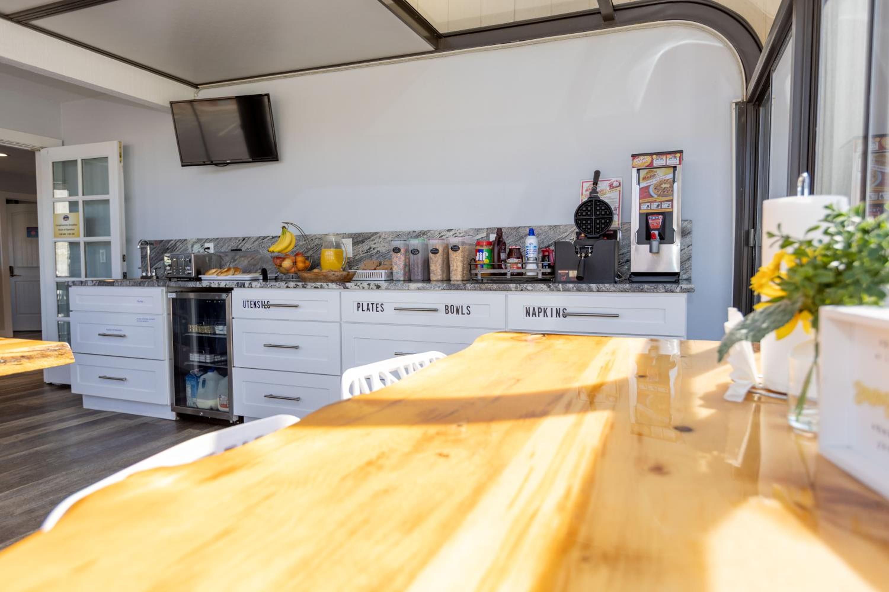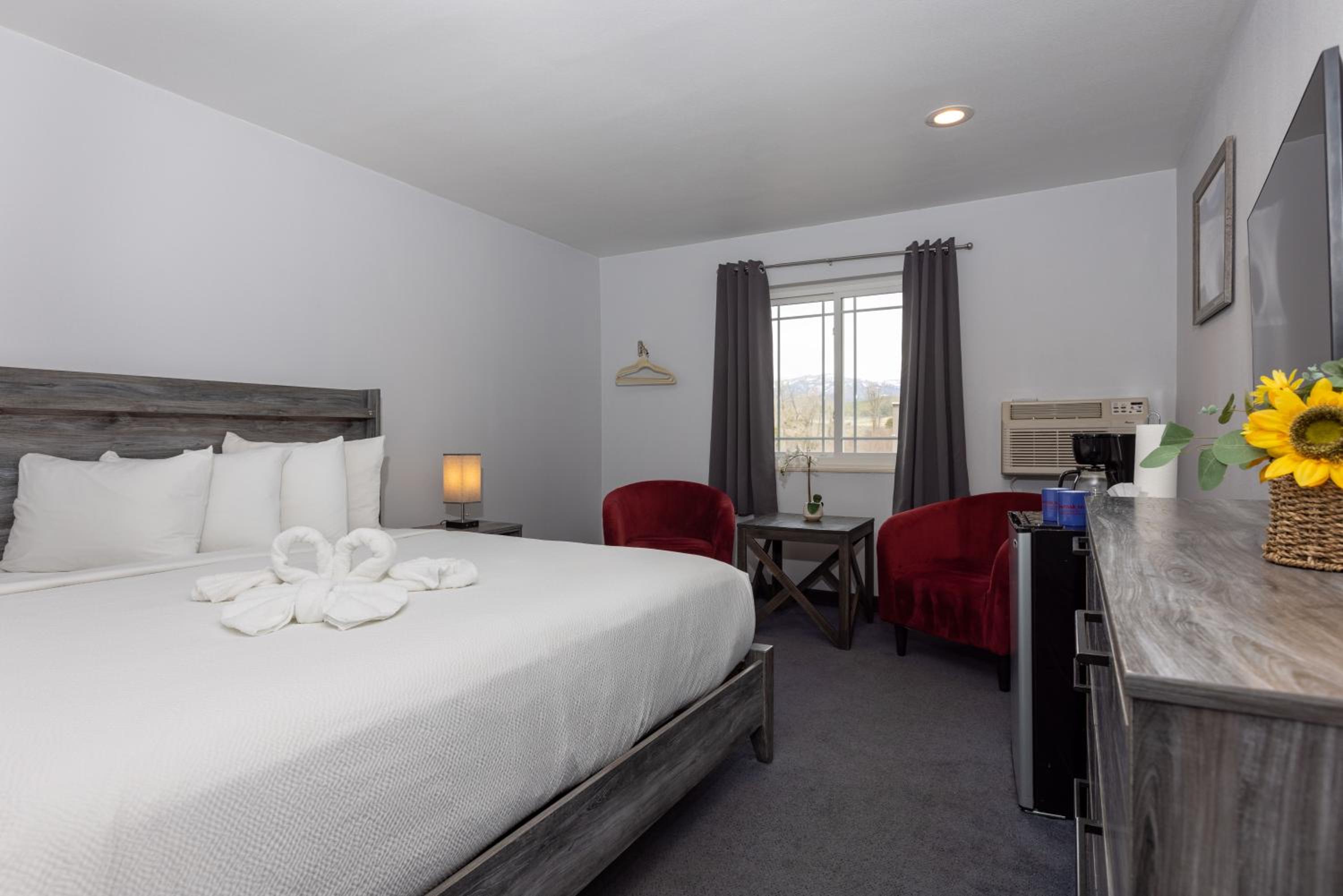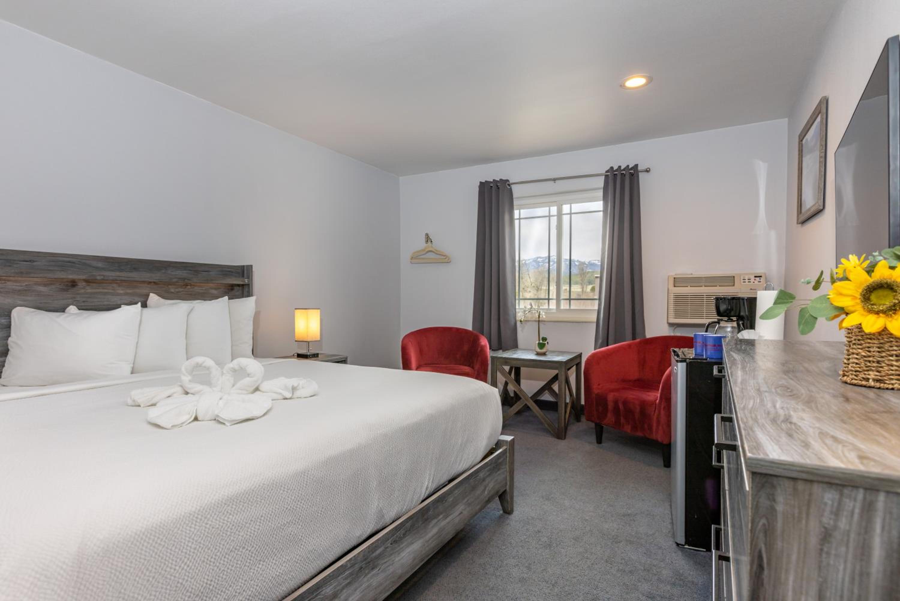 Comfortable Accommodations: Each room is thoughtfully furnished with a coffee maker, refrigerator, and a TV with 26 cable channels. Choose from King Bedrooms with a cozy sitting area or Double Queen Bed rooms with a convenient work desk.