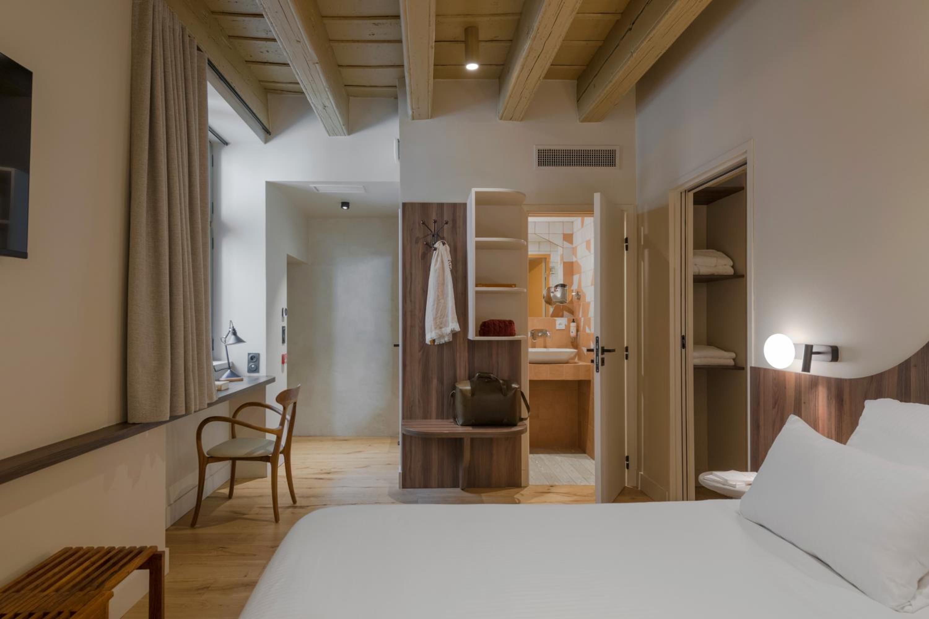 Experience a blend of history and modern luxury in our 12 meticulously designed rooms and suites. Adorned with French ceilings, woodwork, and high-end materials, each room offers a view of Old Lyon's picturesque streets or a serene private courtyard. Enjoy amenities such as air conditioning, soundproofing, and complimentary Wi-Fi for a truly relaxing stay.