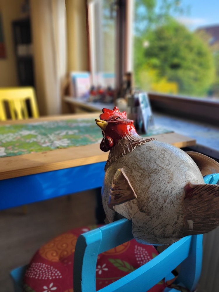 Whenever I visit my family in Germany I stay here. The property is nestled in the quiet beautiful countryside, every morning we enjoyed seeing the rolling hills with cows, sheep, donkeys milling about. I only booked a room and upon arrival was "upgraded" (no extra fees) to a Ferienwohnung, i.e we had an entire apartment for our 4 night stay. Staff is so accommodating and kind. Will stay here again, without looking for other places first.