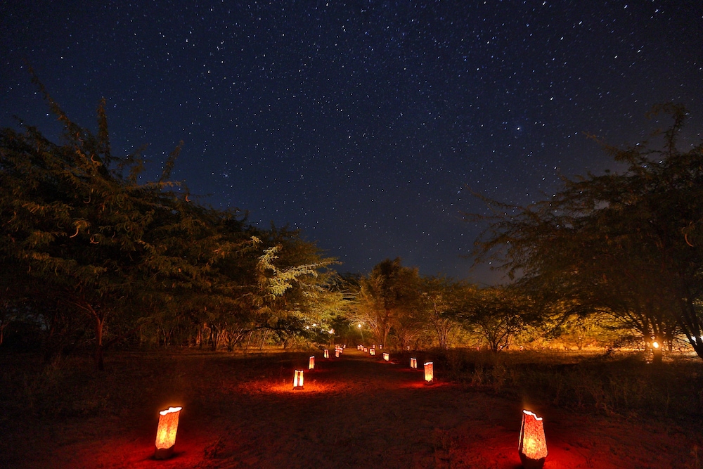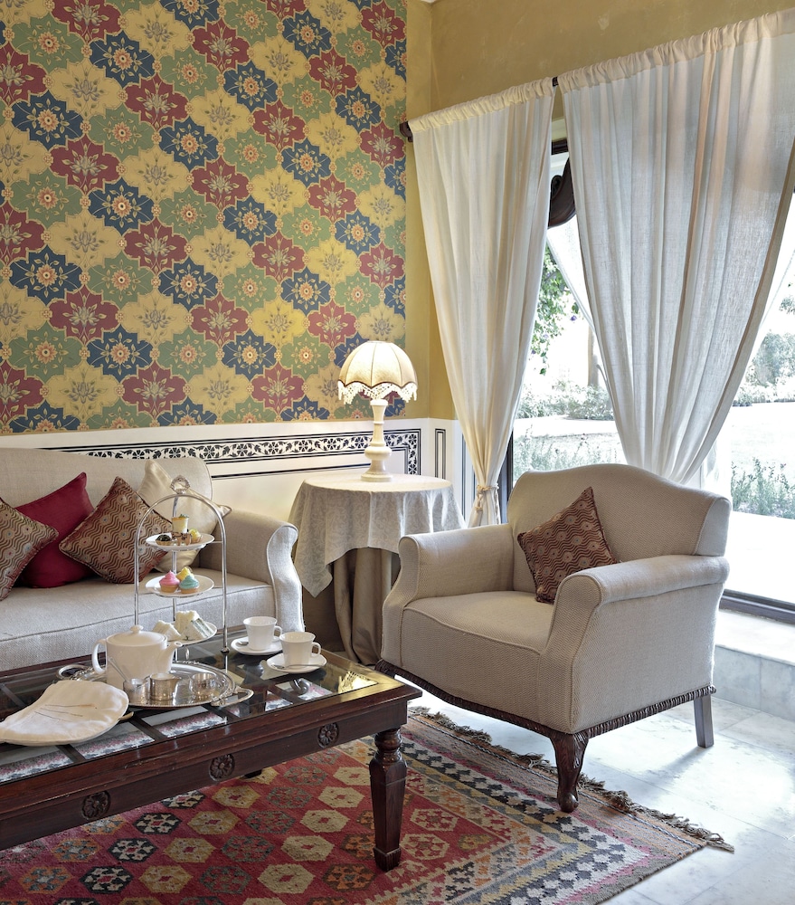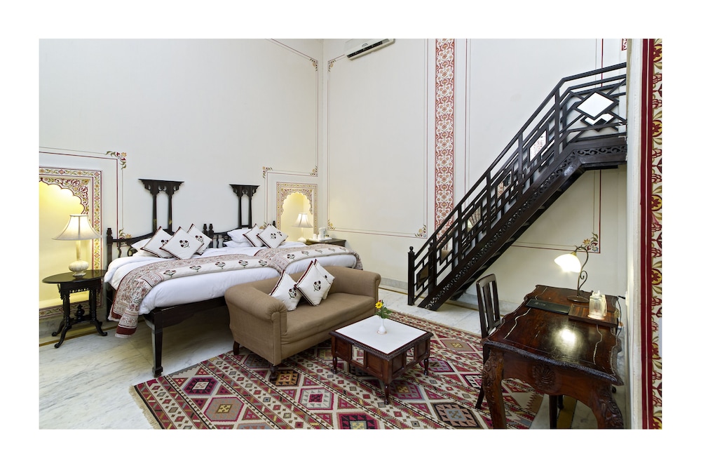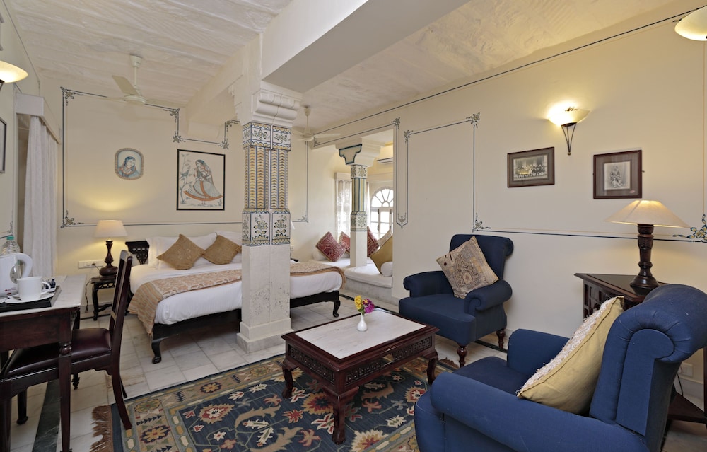 A luscious garden heritage hotel away from noisy city life in Rajasthan. After a long drive from Udaipur we sank into the welcoming arms of the attentive staff and enjoyed the lively Rajasthani musicians before a delicious meal. The rooms were spacious, providing ample room for 3 of us with an extra bed added. I would definitely recommend this beautiful property for discerning travelers looking for unique luxurious accommodations.