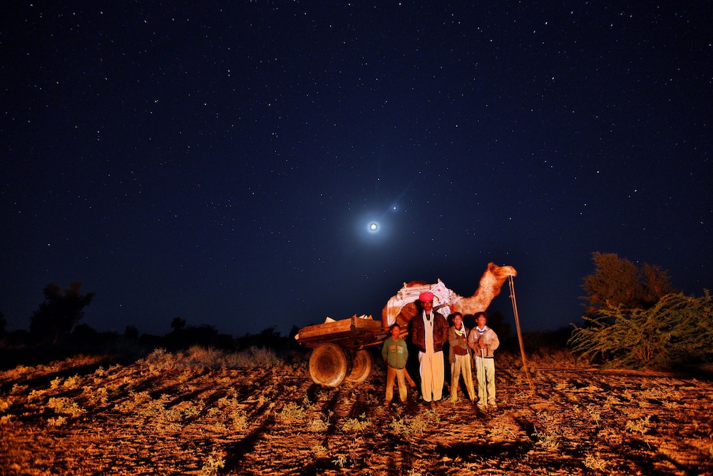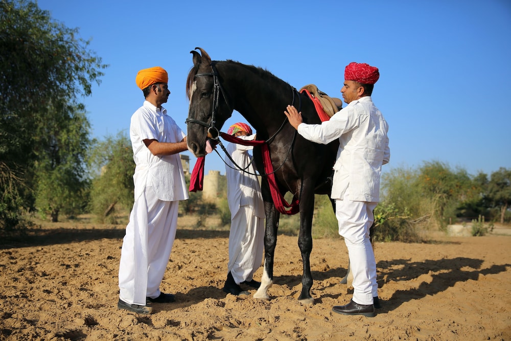 Hotel is adapted from a family owned fort to comfortable rooms with lovely gardens and lounges. Great ambience at nights sitting in open air with bonfire and authentic indian live music. Villagers are very welcoming and we (all girls) feel safe to go out for a short walk. There is no much around but hotel offers a good variety of activities including village jeep safari and horseback riding on local breed Marwari.
