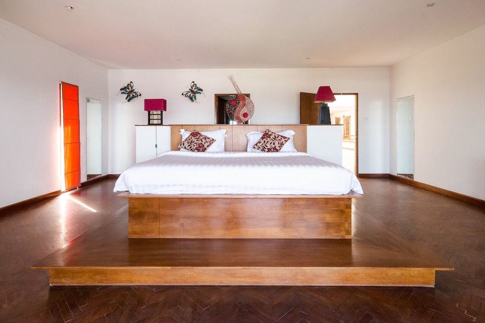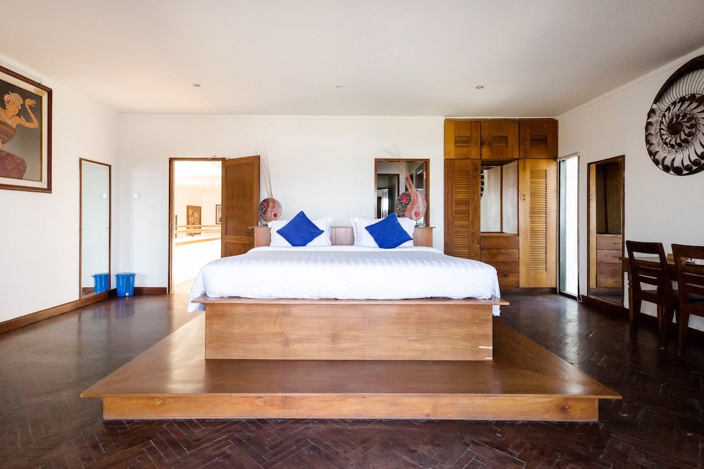 This villa could be a 5 star resort if the property maintenance was a priority. The building is starting to show its age. The villa is beautiful with a lap pool looking out onto the Bali Sea. It is located in Ketewel and renting a car is a necessity. There are no restaurants or stores within walking distance. The staff are very helpful and can communicate in basic English. Breakfast is served from 7 to 8am with a limited menu, however it is good. We stayed for three nights and were the only customers there. There are a lot of villas in this area and all seemed empty. Most people seen were fishermen talking their boats out in the morning for a few hours. The staff moved us to another room after the first night because the air conditioning was not working in the first room. The property is difficult to find, especially at night since there are very limited street signs. We arrived at midnight and the staff were waiting for us, as someone is there 24 hours per day.