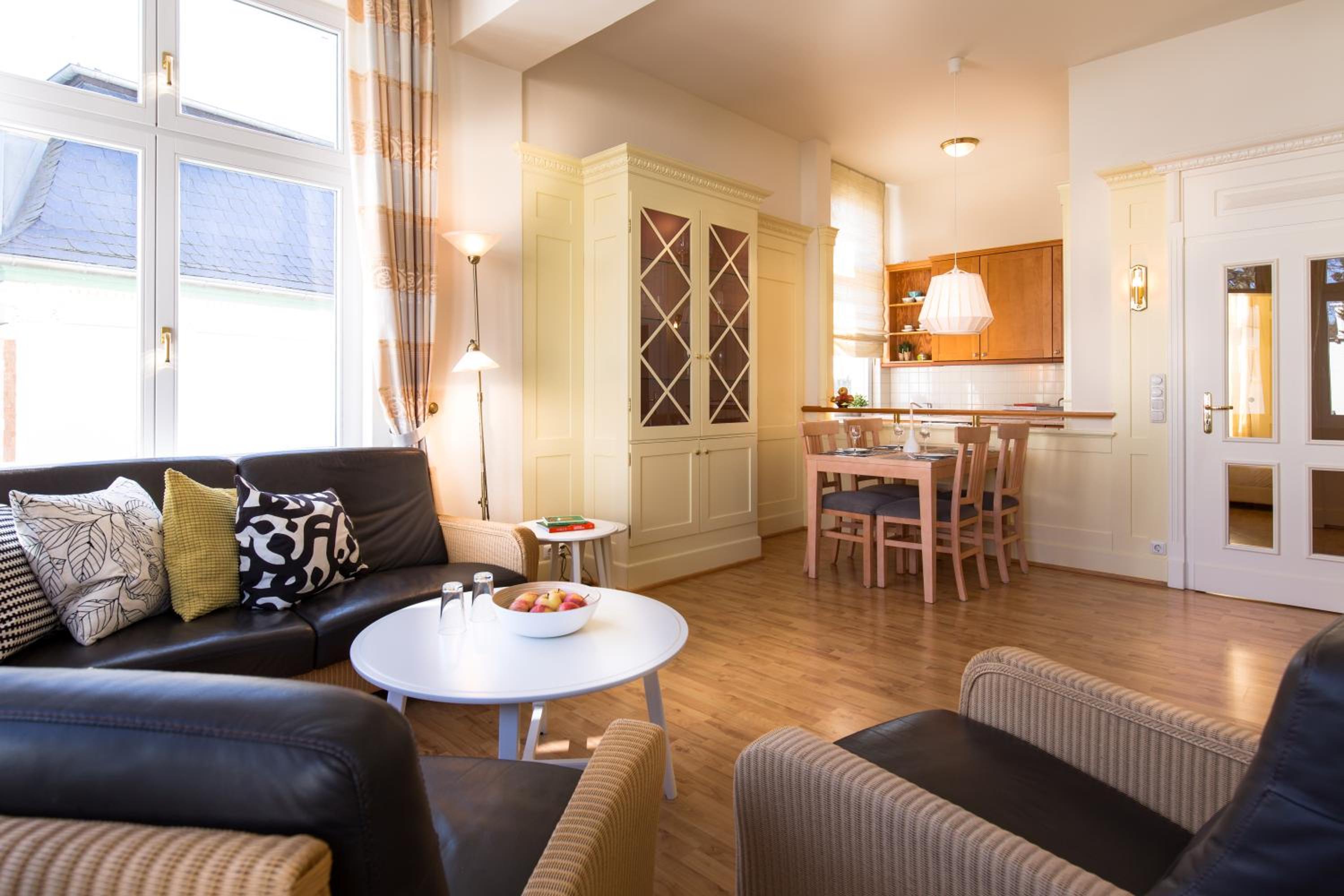Apartmenthaus Villa Usedom offers a blend of history and modernity, with spacious apartments featuring individual interiors and top-notch amenities. Guests can enjoy access to the Vitalis spa area, complete with a pool, saunas, fitness room, and treatment area.