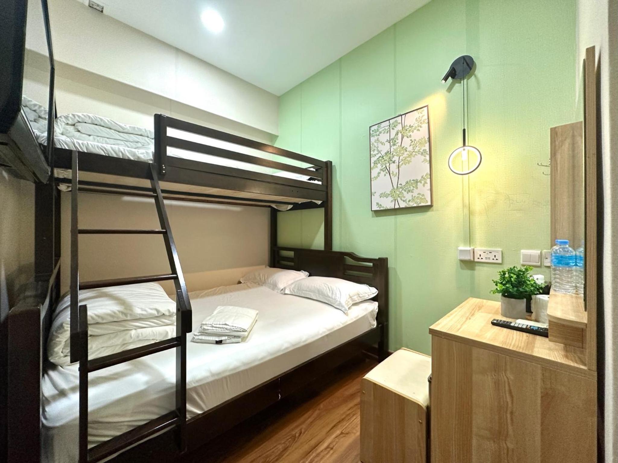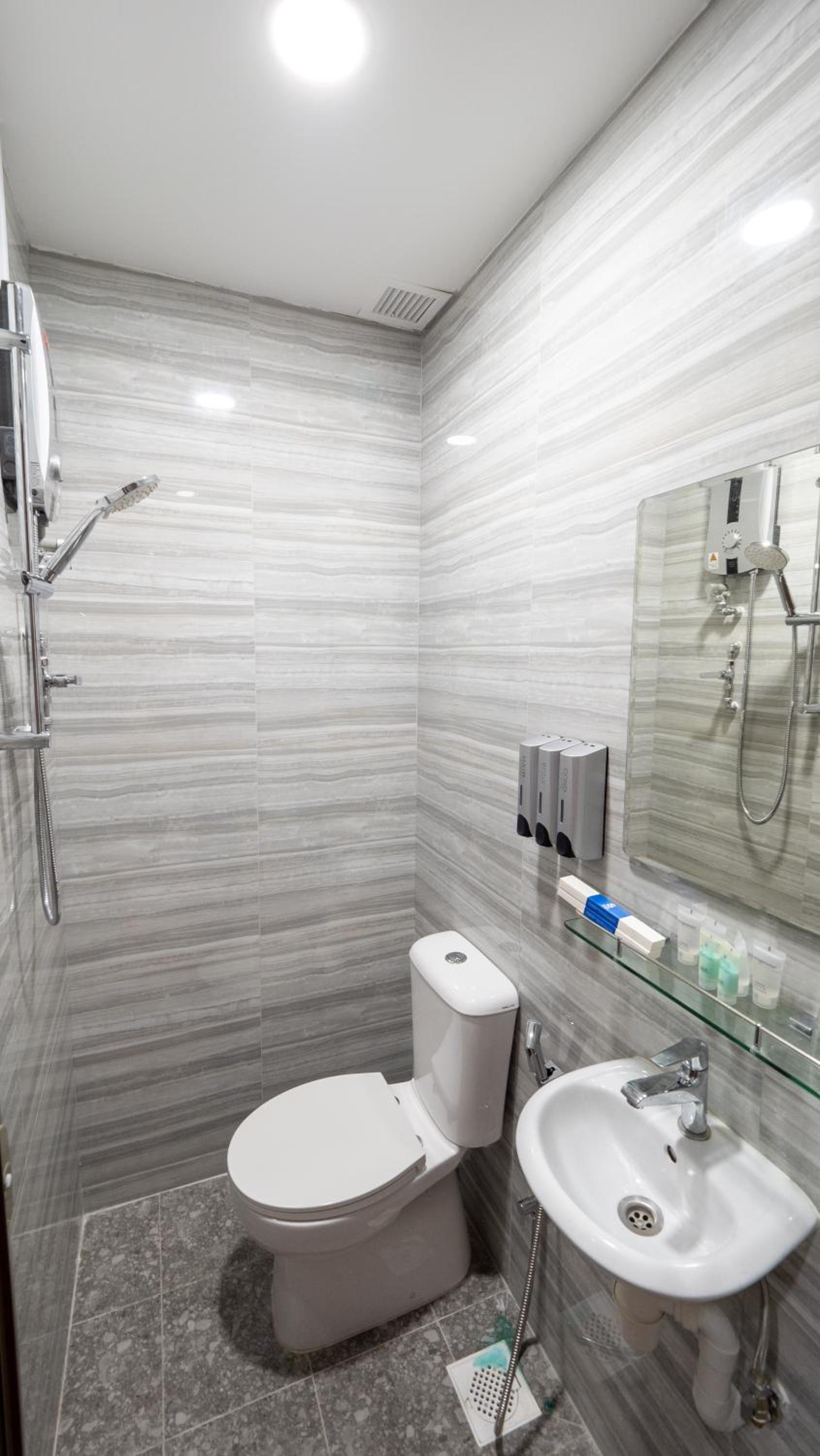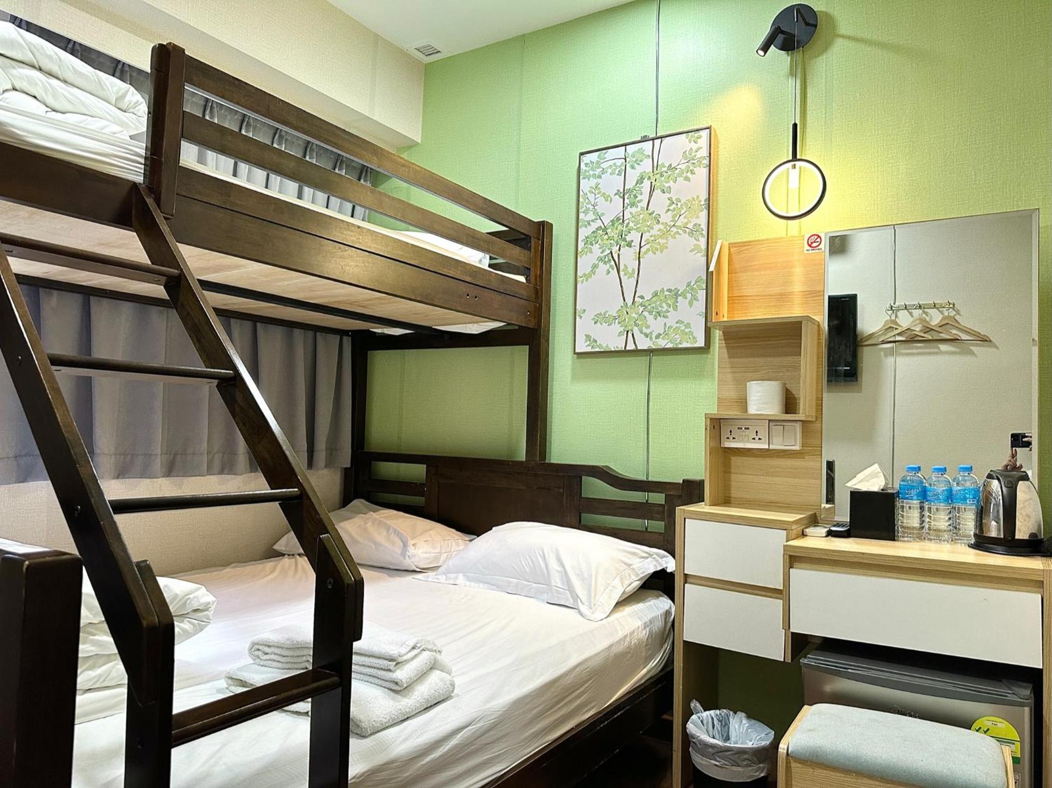 Molds everywhere in the bathroom and bedroom's walls. Very small and really disgusting. Im pretry sure you can find better hotels for the same price. The staff not nice, sheets dirty with make up marks, a bugger on the walls.... really disgusting experience, and even more when you're travelling with kids. The toilet had a leakage that kept the bathroom floor wet, tv was not working and eventhough we were 2 adults and 2 kids they only provided one double bed an 1 single bed.. when the staff were asked about the beds, they said that the kids were meant to share the single bed.. tv was never fixed and they said maintainance would check the toilet after we left. Overall, this is the worst hotel i have ever stayed and booking.com should not even offer this kind of place.