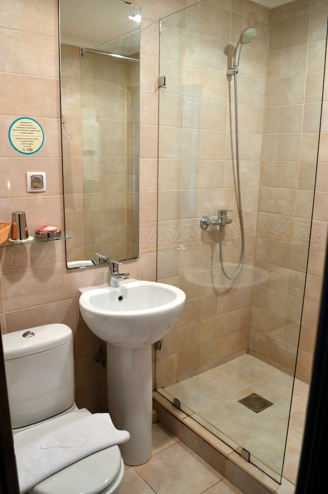 Pluses: good location, reasonably modern and comfortable. Slippers and pool towel in room.