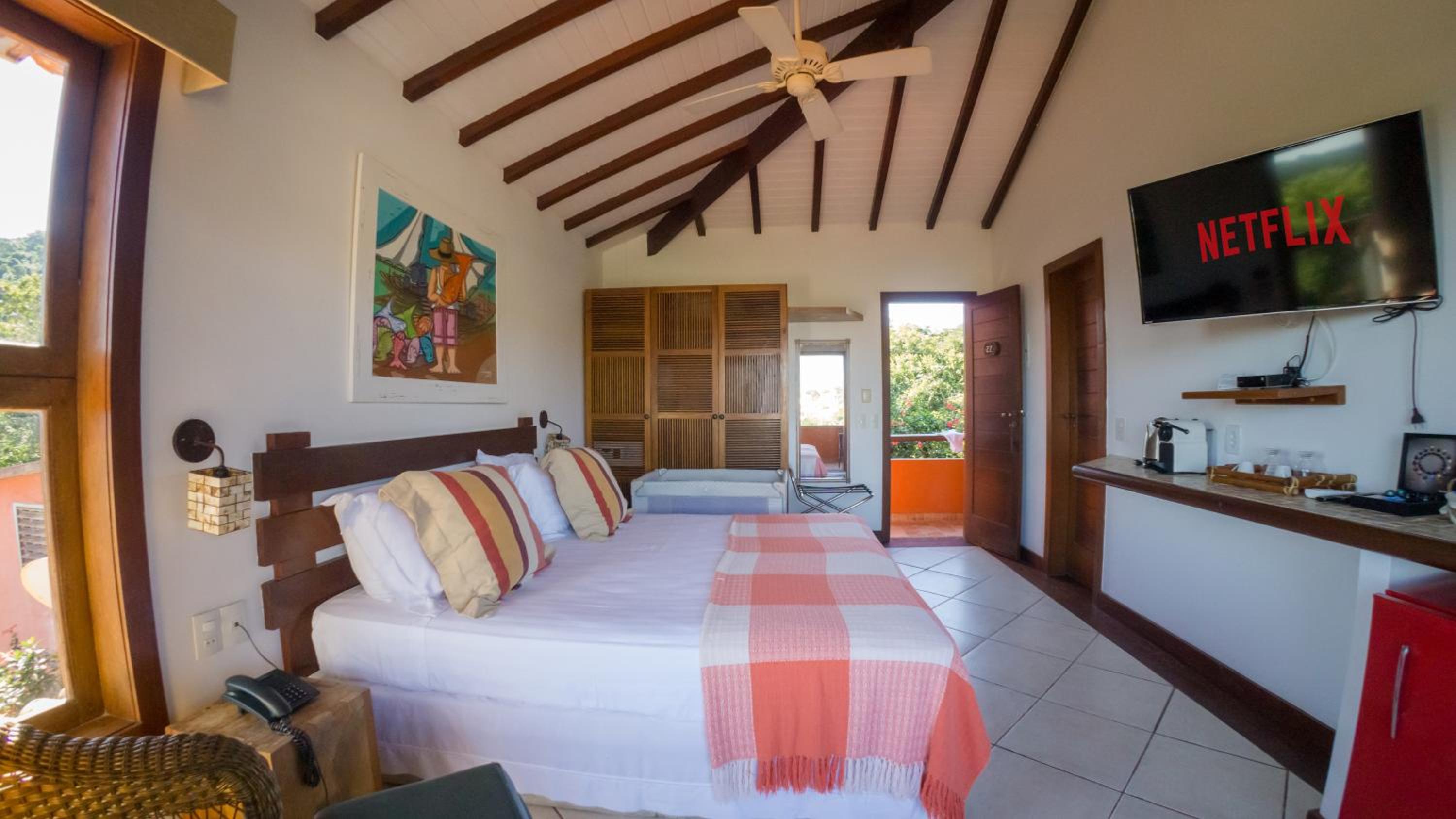 Fui muchas veces a Buzios, conozco muchas posadas de la zona. Vi su valoración y creo que esta muy sobrevalorada. El desayuno es normal, no me gusto la limpieza. Las cortinas de la habitación estaban llenas de hongos. Pedi que las laven o saquen por un tema de alergia y no lo hicieron durante los 9 dias de alojamiento. Me dijeron que no tenian otras cortinas y que no las podian mandar a lavar. Otro día ingrese en la habitacion y me encontre con gente de mantenimiento dentro de la habitación en el balcon, lo estaban pintando. Era un dia de lluvia y no pude usar el balcon ya que estaba pintadoMe esperaba otra cosa de un hotel boutique de 4 estrellas