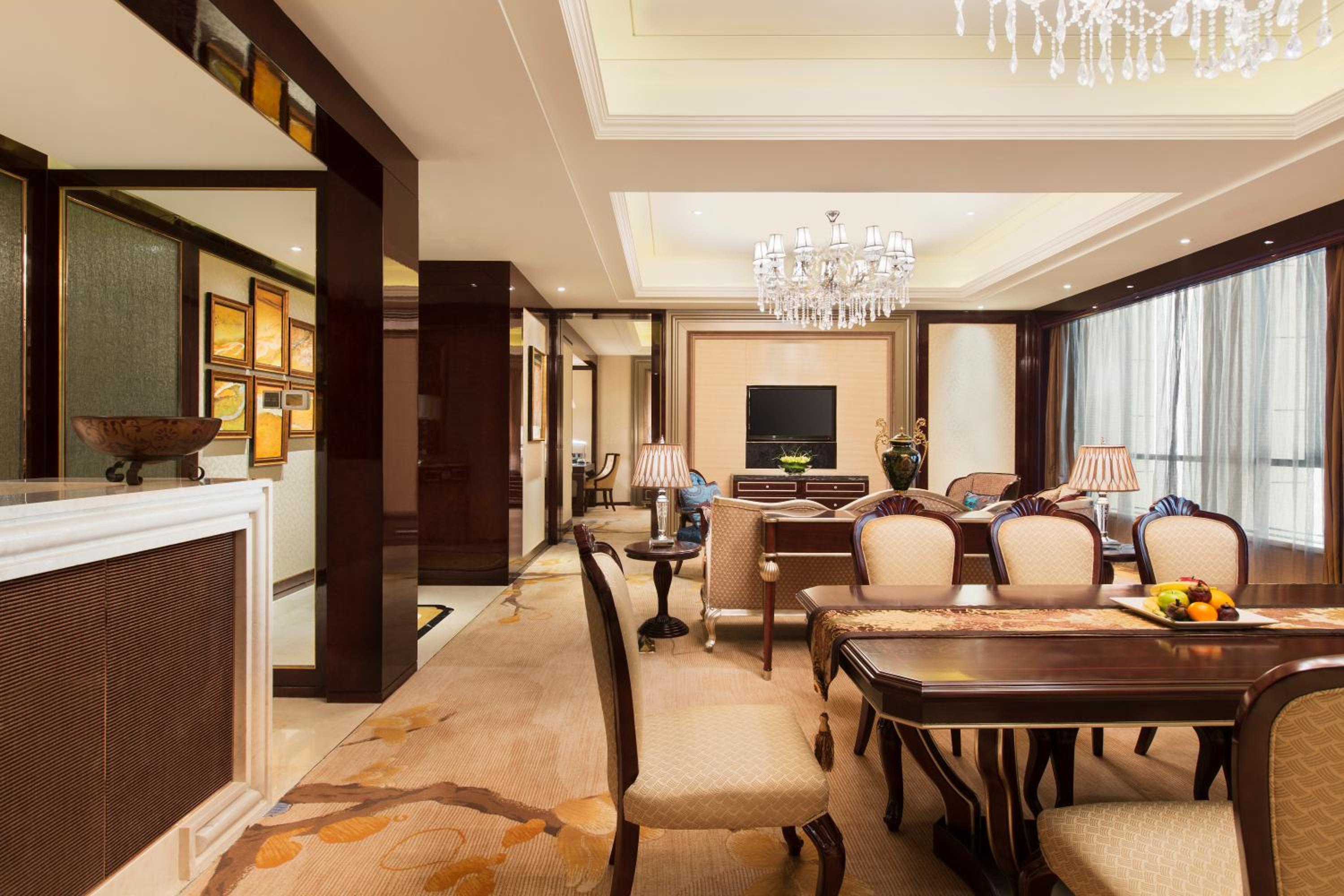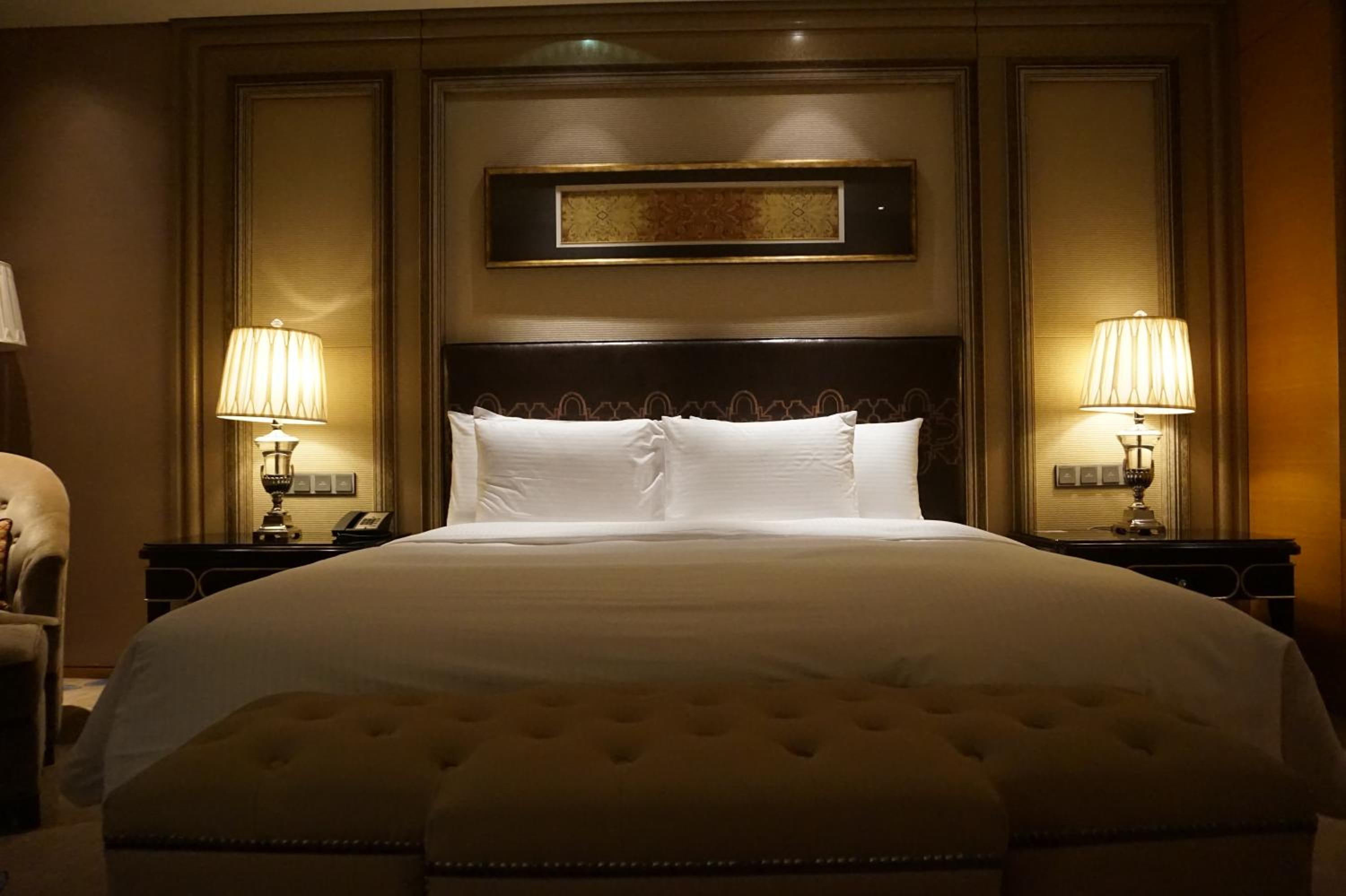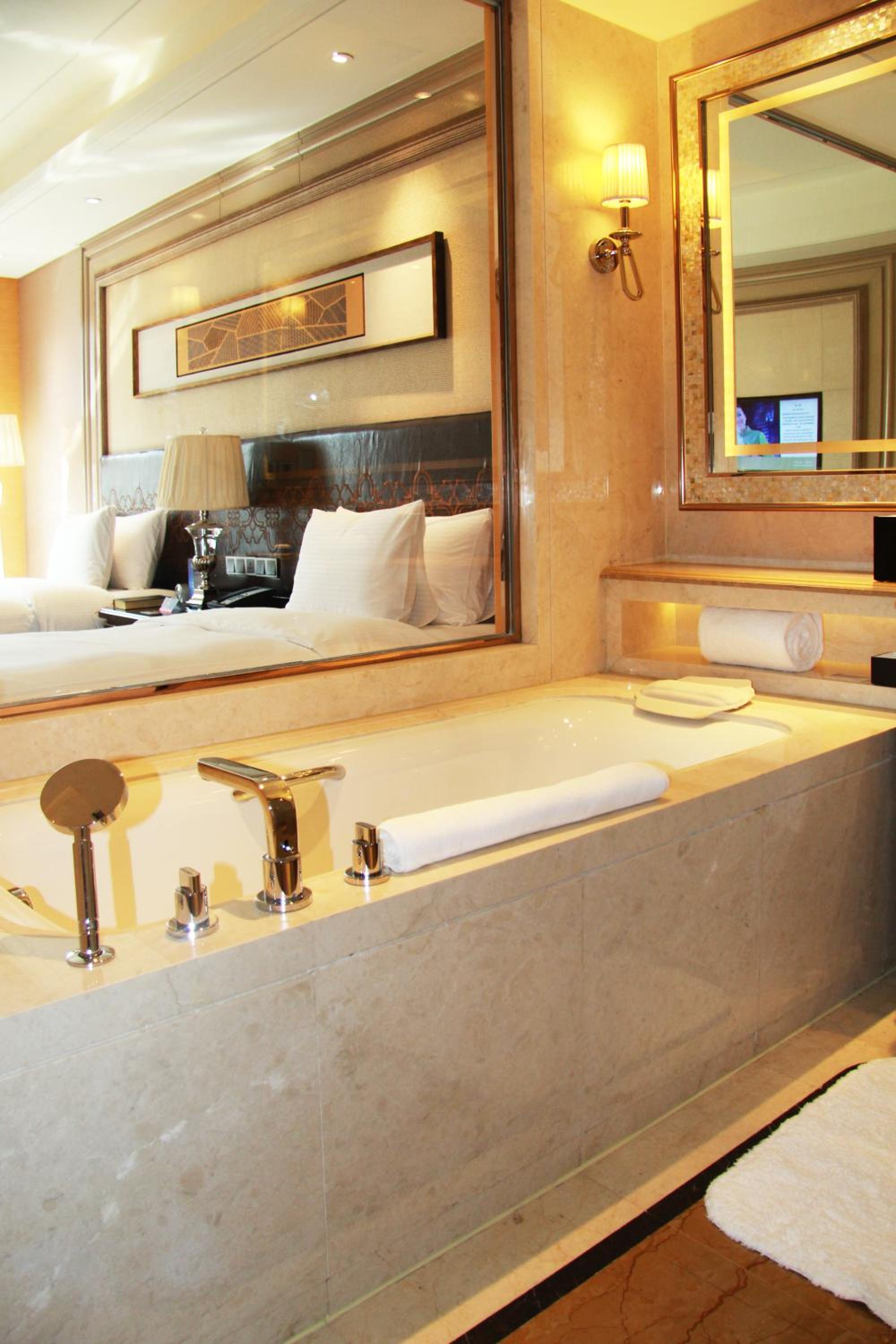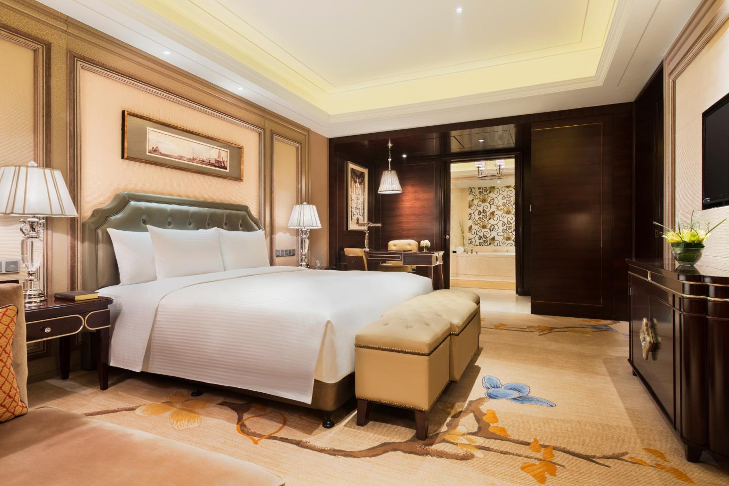 The Wanda Realm Harbin Hotel offers sumptuous accommodation with soft, warm-colored rooms featuring flat-screen TVs and en suite bathrooms. The blend of old-fashioned charm with modern amenities provides a comfortable stay for guests.