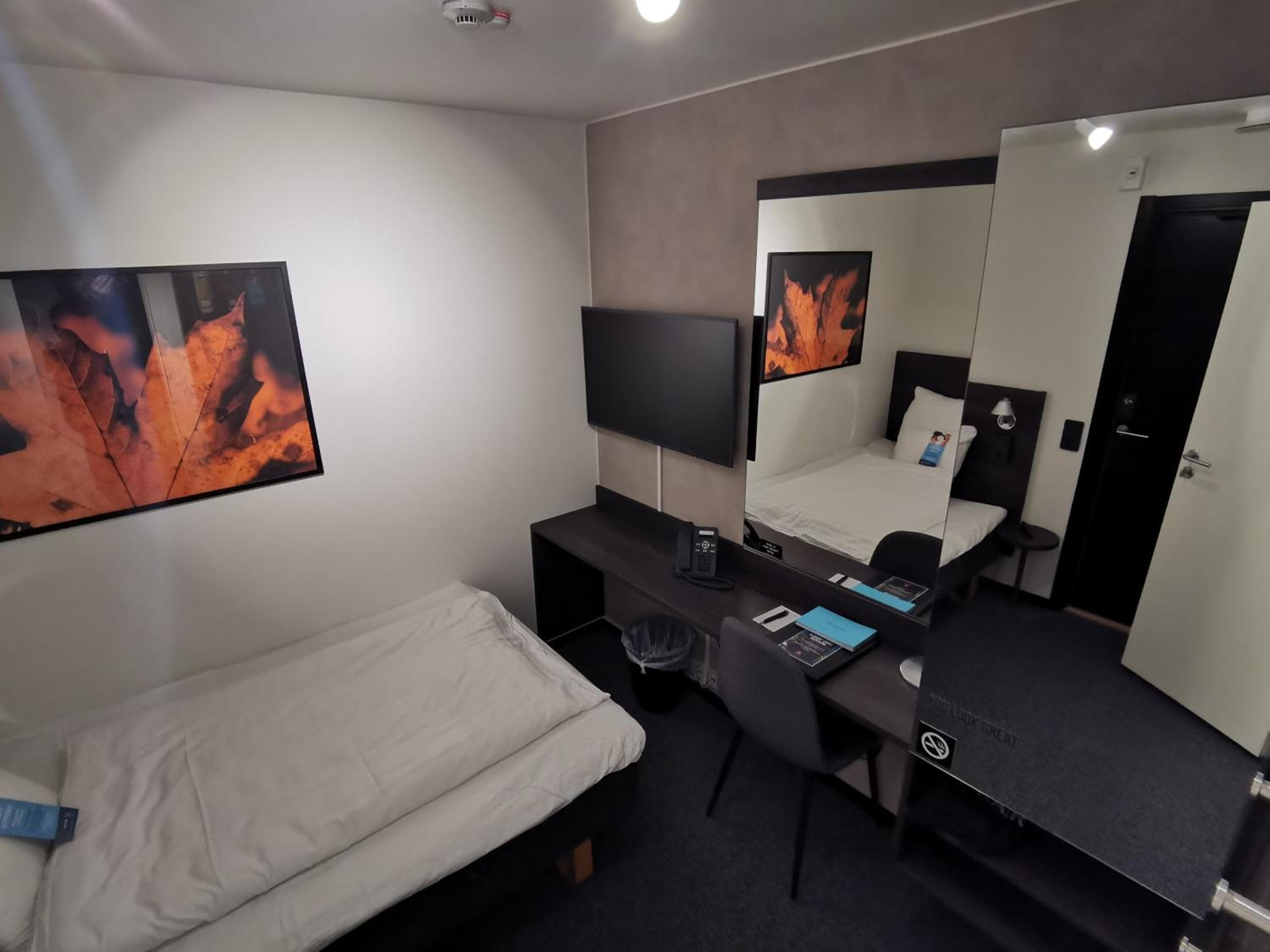 La "Compact single room" est une chambre de 10m² "à la cave" (en-dessous du niveau de la réception et sans fenêtres). Le prix est particulièrement élevé pour cette chambre minuscule.