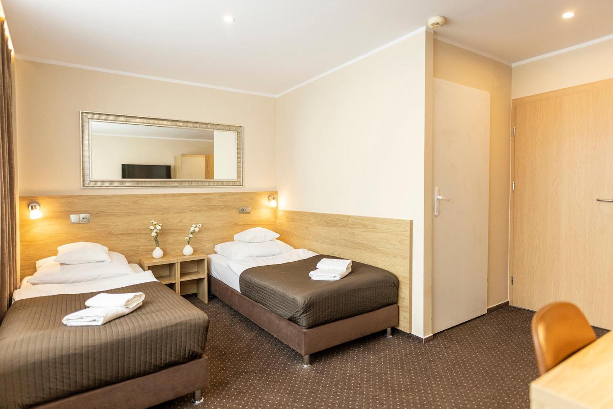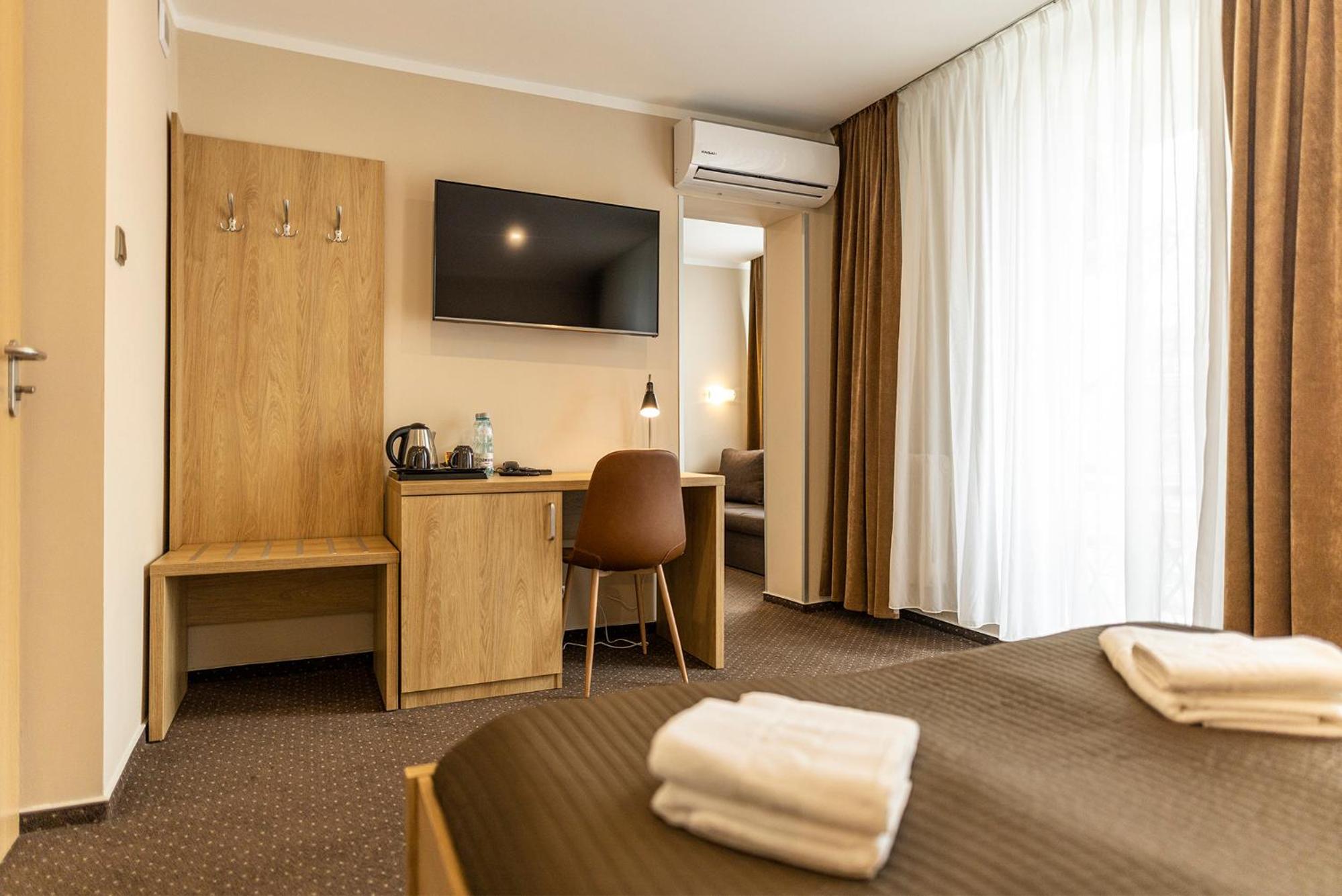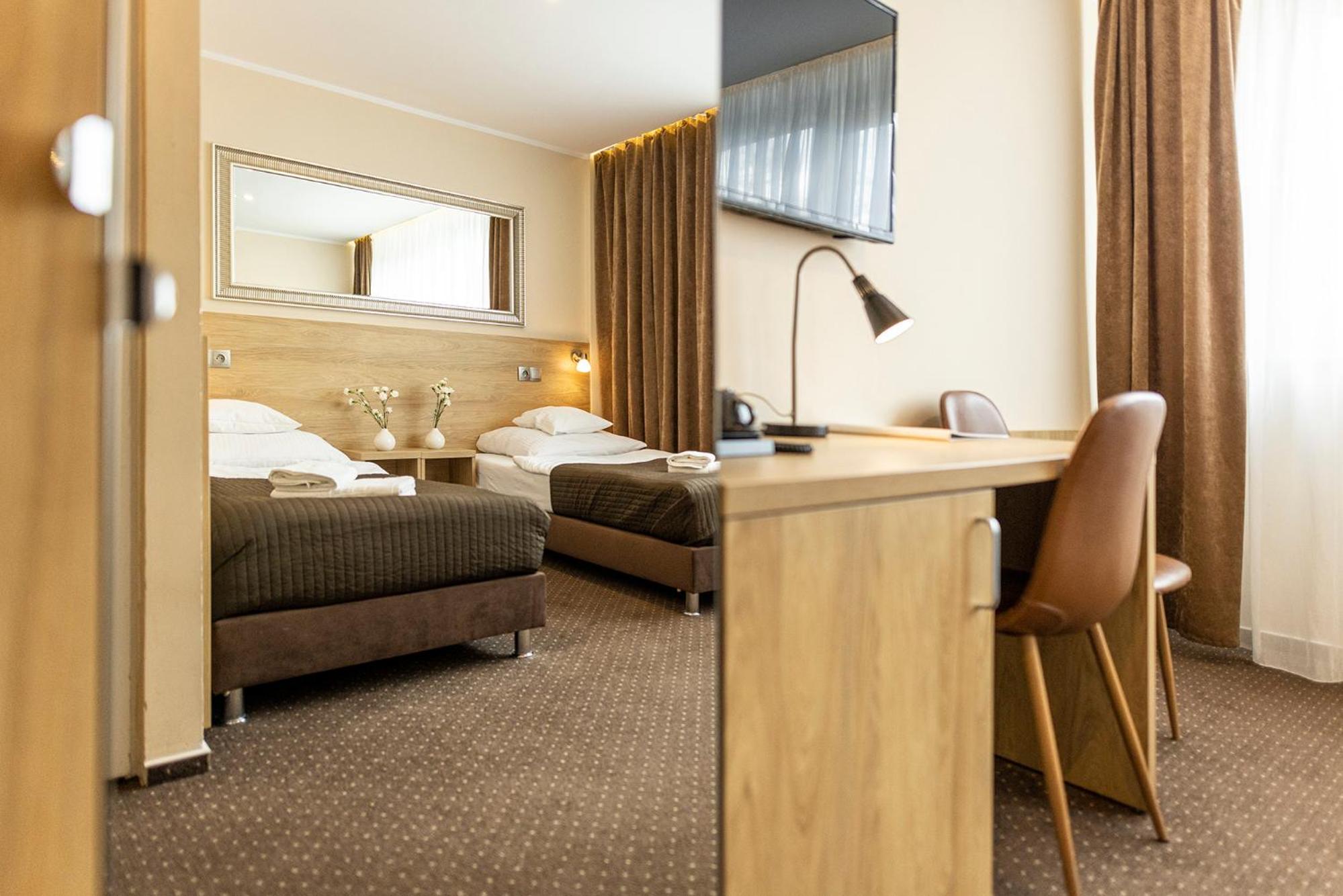 Experience comfort at its best in our well-equipped rooms, each featuring a bathroom with a shower. Enjoy the added perks of a tea and coffee set, along with mineral water. Select rooms even boast a cozy seating area. Indulge in authentic Polish cuisine at our on-site restaurant, where a delightful buffet breakfast awaits each morning.