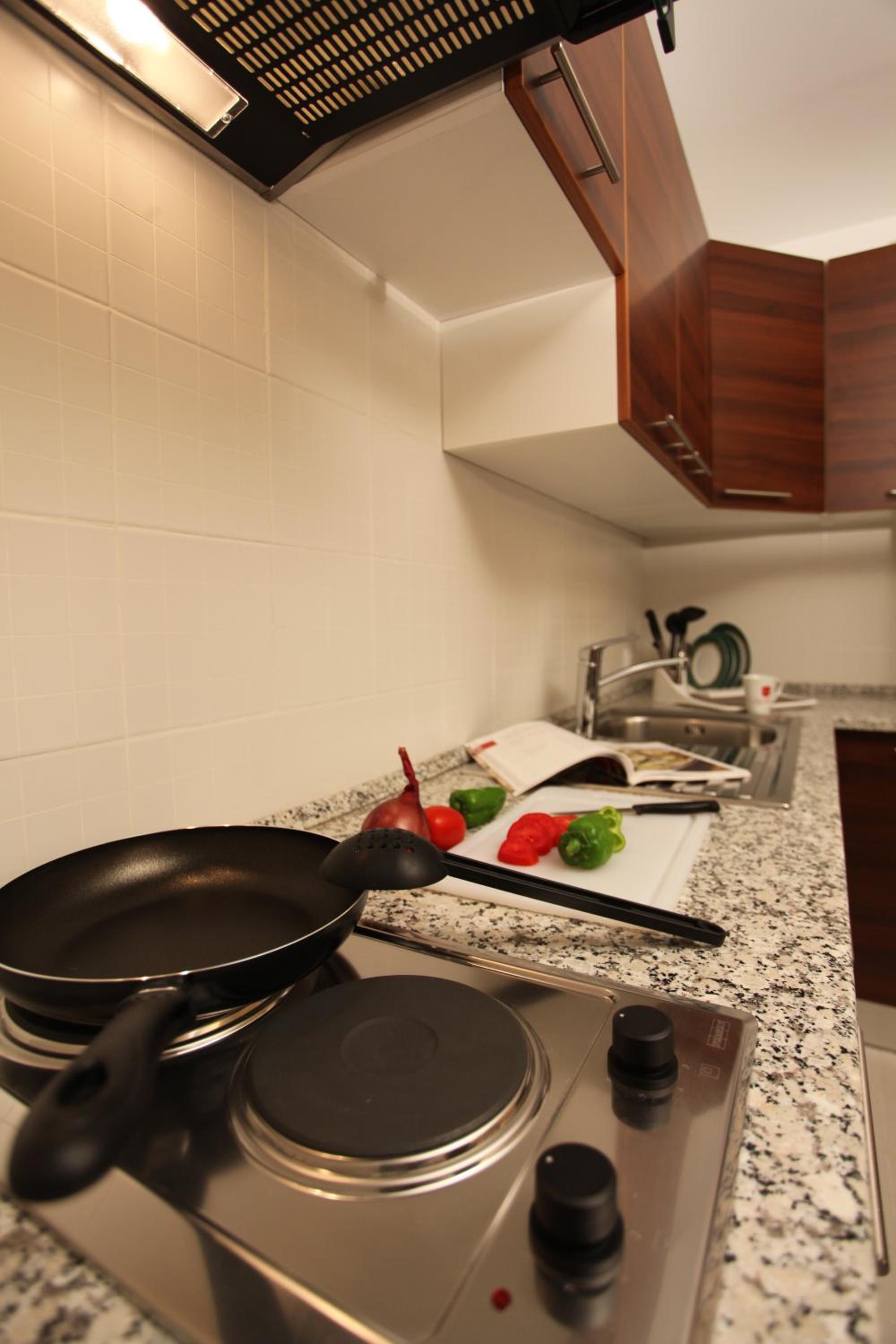 The hotel offers a range of rooms and suites with modern amenities, including free Wi-Fi, air conditioning, and private bathrooms. Suites are equipped with a kitchen for added convenience.
