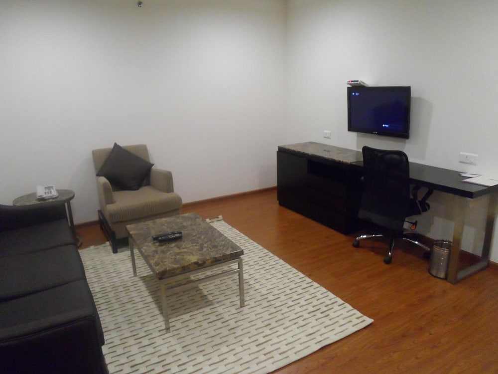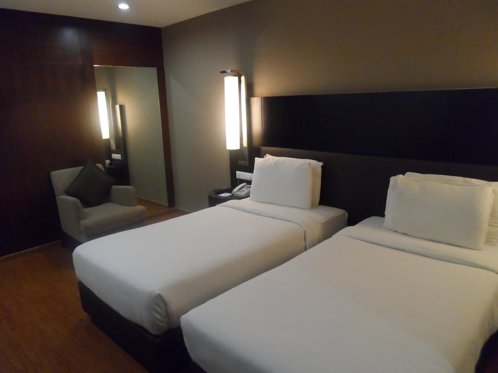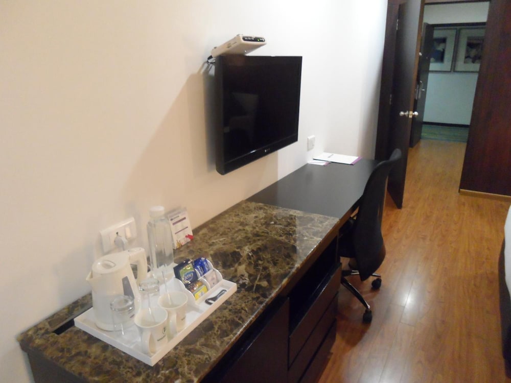 First, the good things: the rooms of this hotel are very large—I think the largest in its category—and they are neat and clean, too, with big bathrooms that have the necessary toiletries. The restaurant looks premium, and the food I had was tasty. Breakfast was also okay. The bad things are that the whole hotel seems like a darkroom, with no sunlight from any side. The big room has the tiniest window a hotel can have, and the carpets in the lobby and restaurant were literally stinking and worn-out. The reception is in a very awkward place, and the entrance seems like the entrance of a cheap bar.
