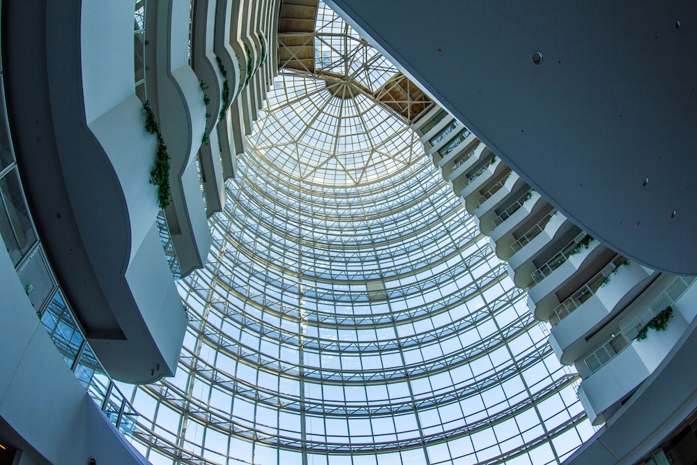 This is a beautiful hotel made of alot of glass. There is a glass chapel in the middle of it on the 3rd floor that is really pretty as well. The buffet was good....just had to walk to the adjacent building. We had sone drinks at the bar on the top floor thats open till midnight. Bartender was very cool. The office staff went out of their way trying to understand me and get me a cab to go eat dinner. I would definitely stay here again.