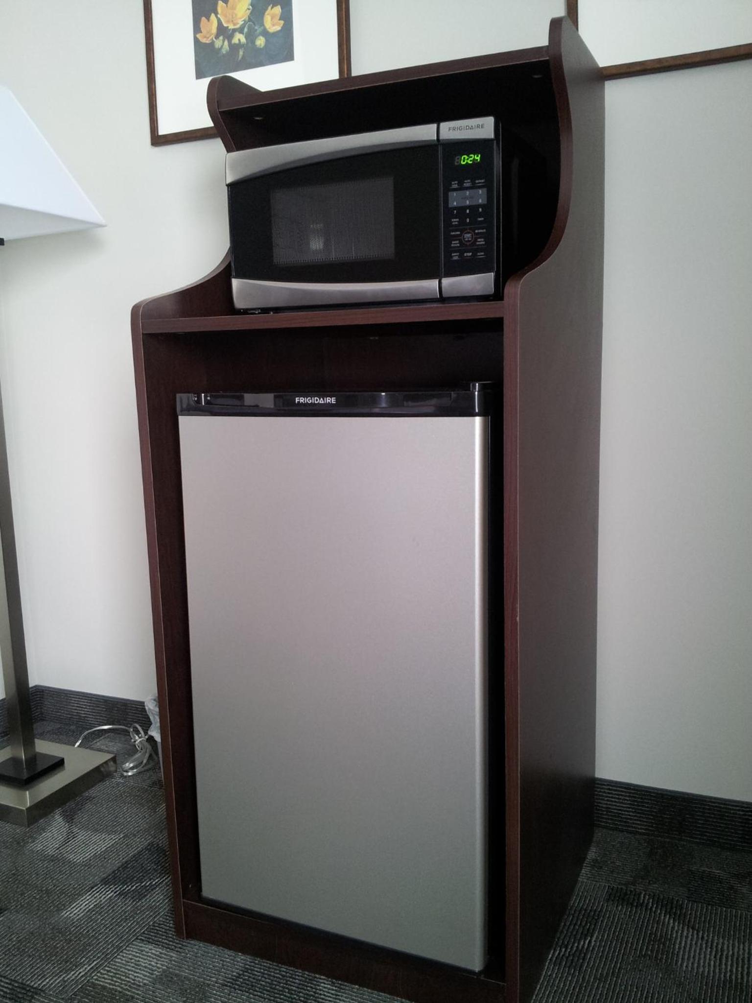 Each room at the hotel comes with free in-room Wi-Fi, cable TV, a microwave, and a fridge. The suites also feature a spacious living area for guests to relax in.