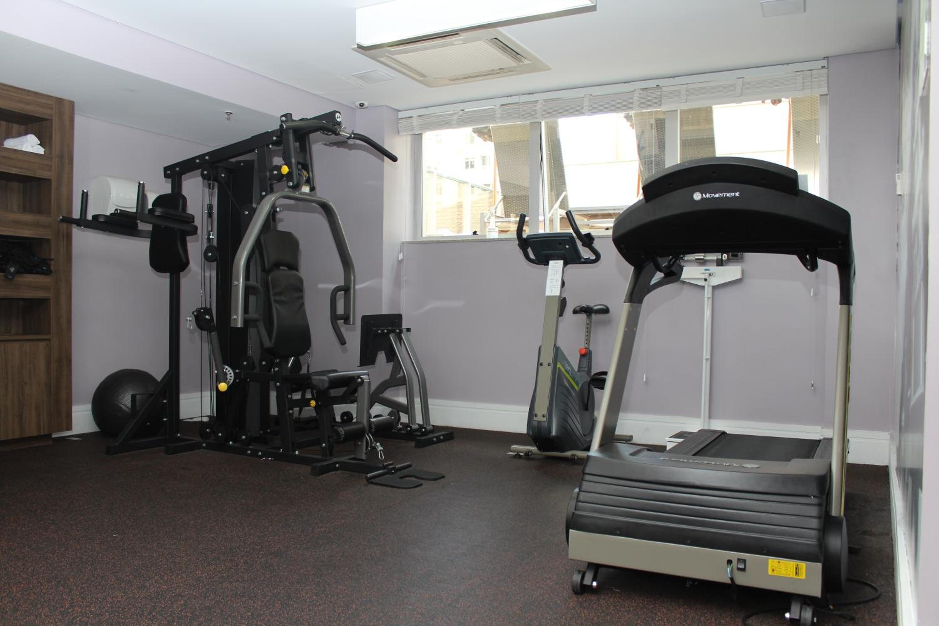 Café da manhã, cama e academia.