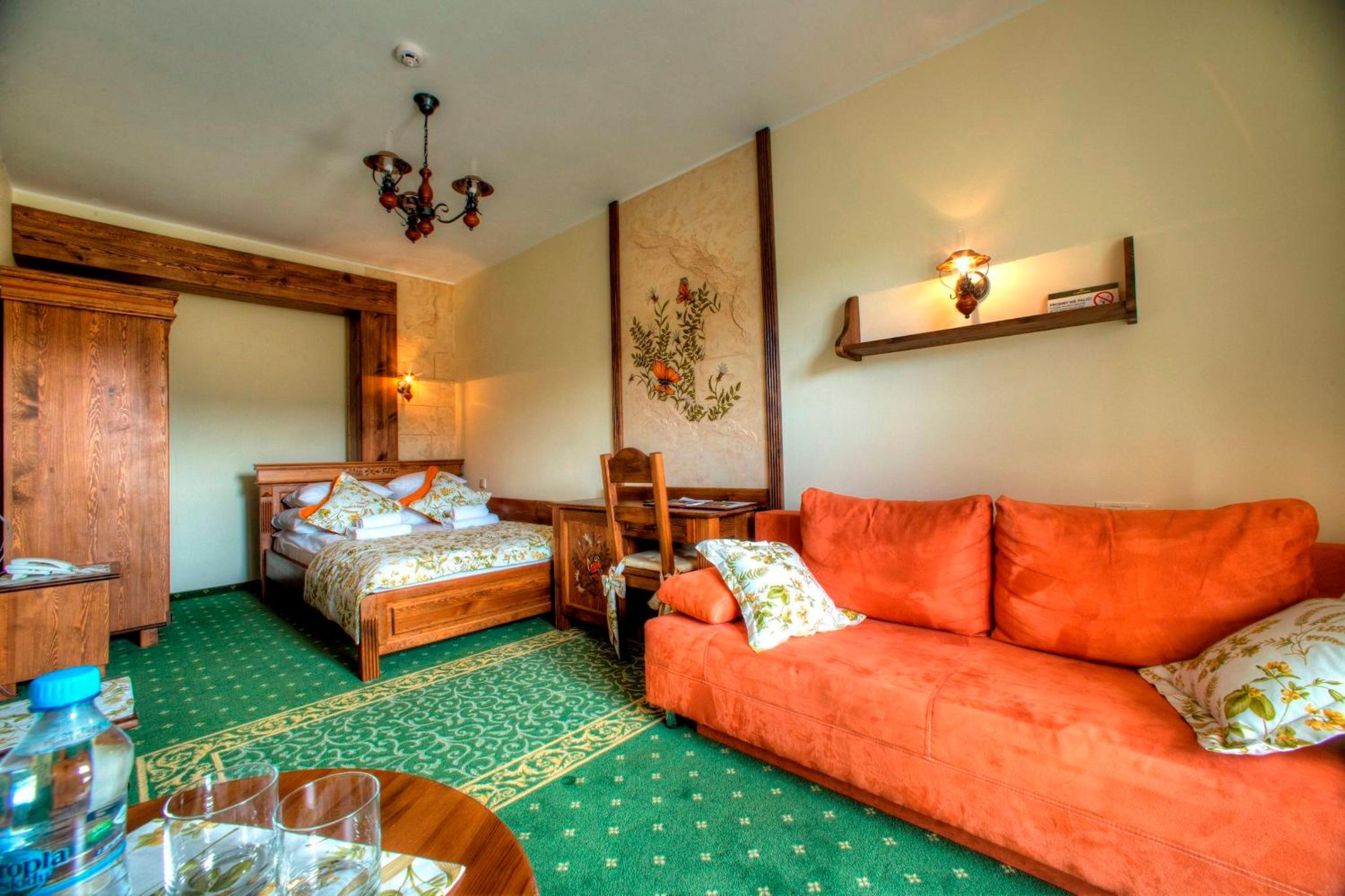 Experience the charm of Bieszczadzki Gościniec Carpatia's homely rooms, each adorned with wall ornaments reflecting the beauty of the forest and mountains.