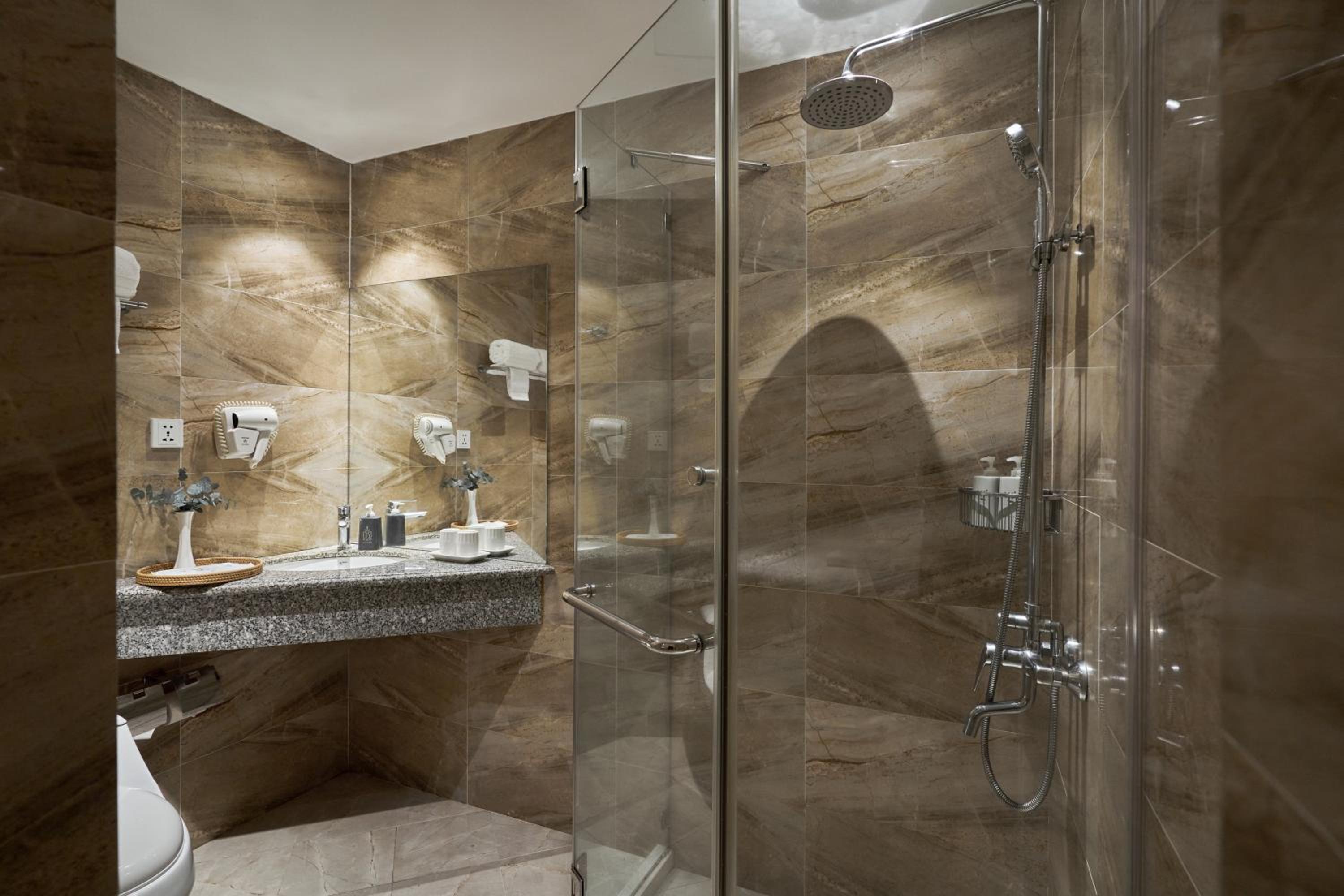 Each room at Sky Gem Hotel Sora is air-conditioned and equipped with modern amenities such as a flat-screen TV, personal safe, and private bathroom, ensuring a comfortable stay for all guests.
