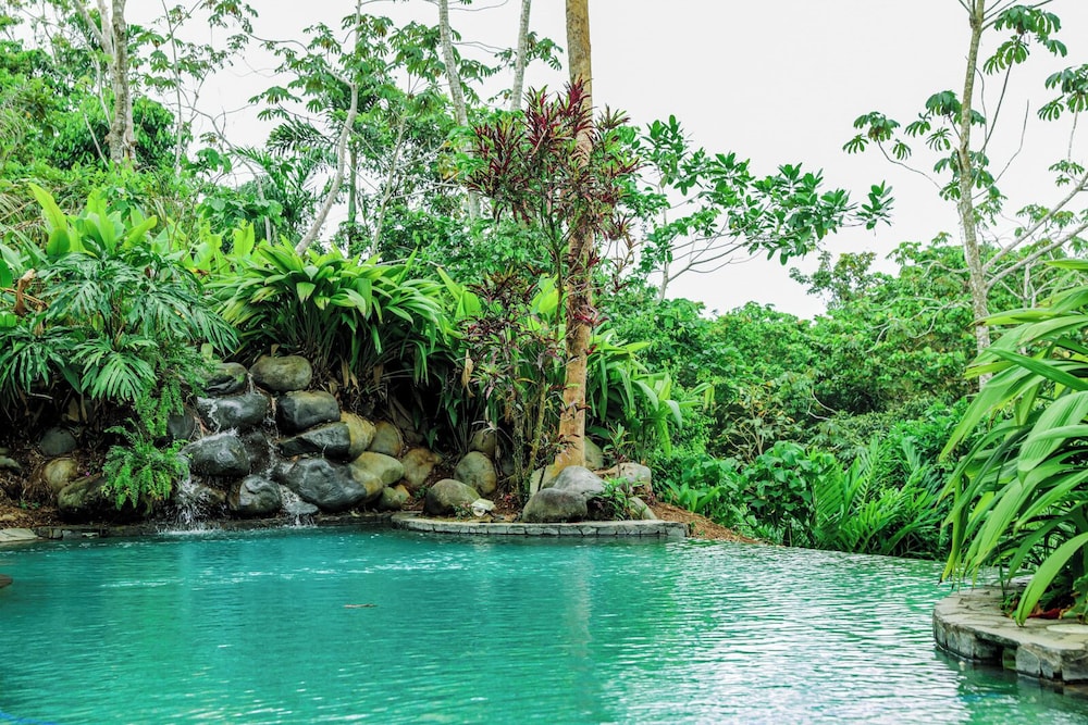 Très bel hôtel inspiré de l'architecture des palenques indiennes. Il comprend un petit site archéologique, un parc très arboré et fleuri où l'on peut croiser singes, iguanes. La sublime piscine avec vue sur la jungle et les toucans qui viennent, en fin d'après midi picorer dans les arbres tout proche. Le bar et le restaurant sont corrects. Le personnel très prévenant comme souvent au Costa Rica.