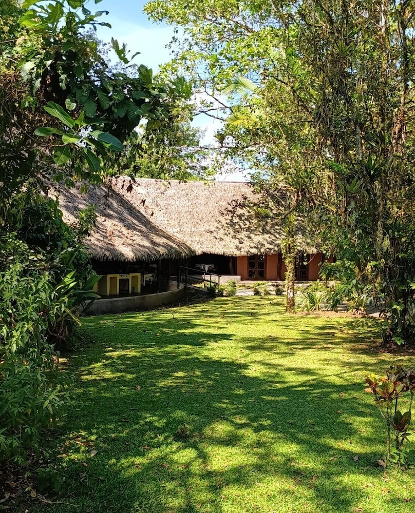 It is truly a rainforest lodge experience. The grounds, pool, and nearby reserve are beautiful. Don't miss walking through the nature trail where many plants' medicinal uses are explained. Rooms are good sized, lots of hot water with good pressure. But the cacophony of insects and birds, which can't be muted as the window/door has no shutters or glass, just a screen, might keep some awake. A few bugs in the room were expected with normal clearances under the doors, not needing to be sealed in this climate, and not a fault of the hotel's cleanliness. If you are expecting an authentic rainforest experience you will not be disappointed. Breakfast was average, typical Costa Rican "gringo hotel" fare but with friendly service. There's not much of a town, just a few tour outposts and maybe a restaurant or two. But you would mostly be visiting this area for rafting, ecotourism, or outdoor adventures.