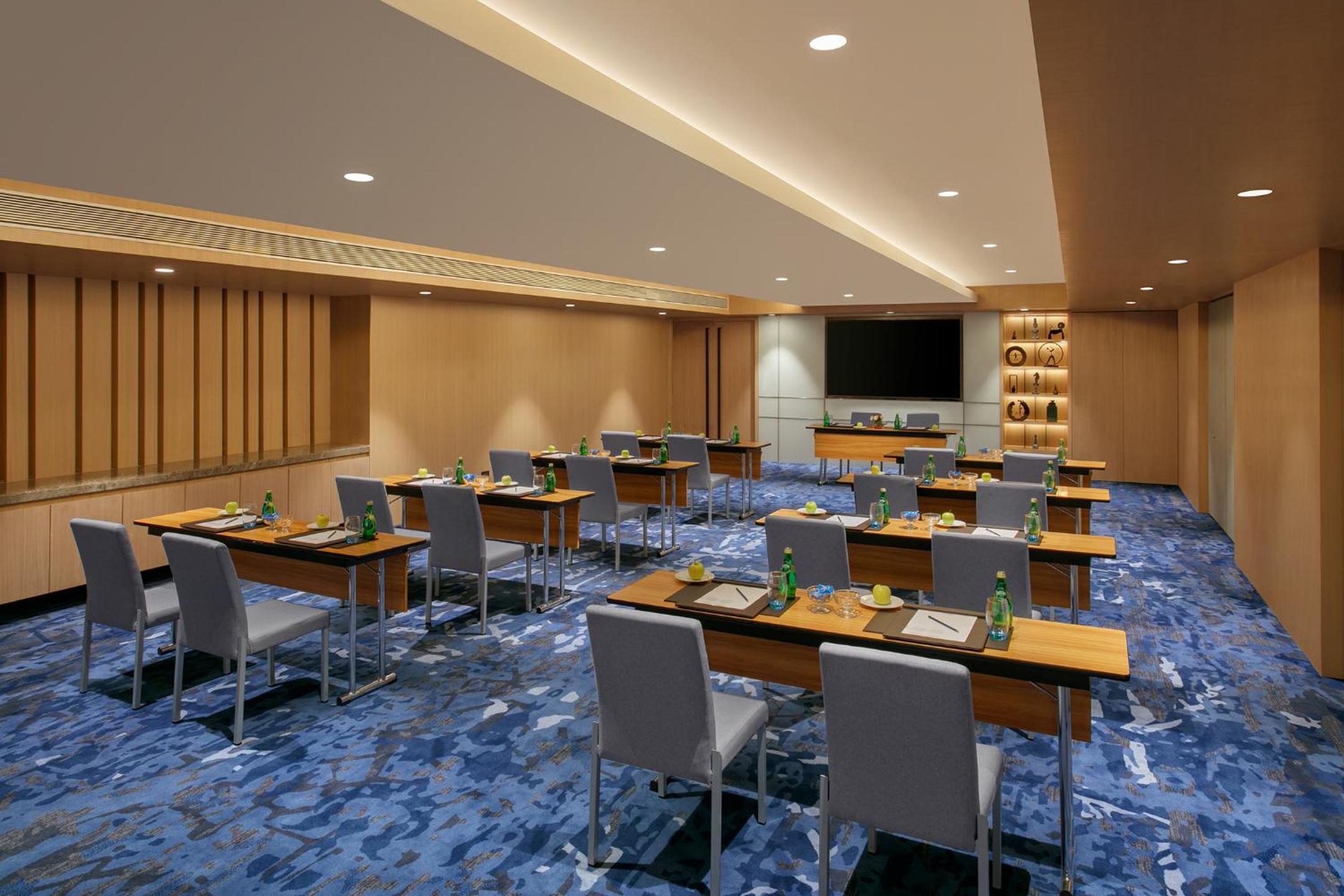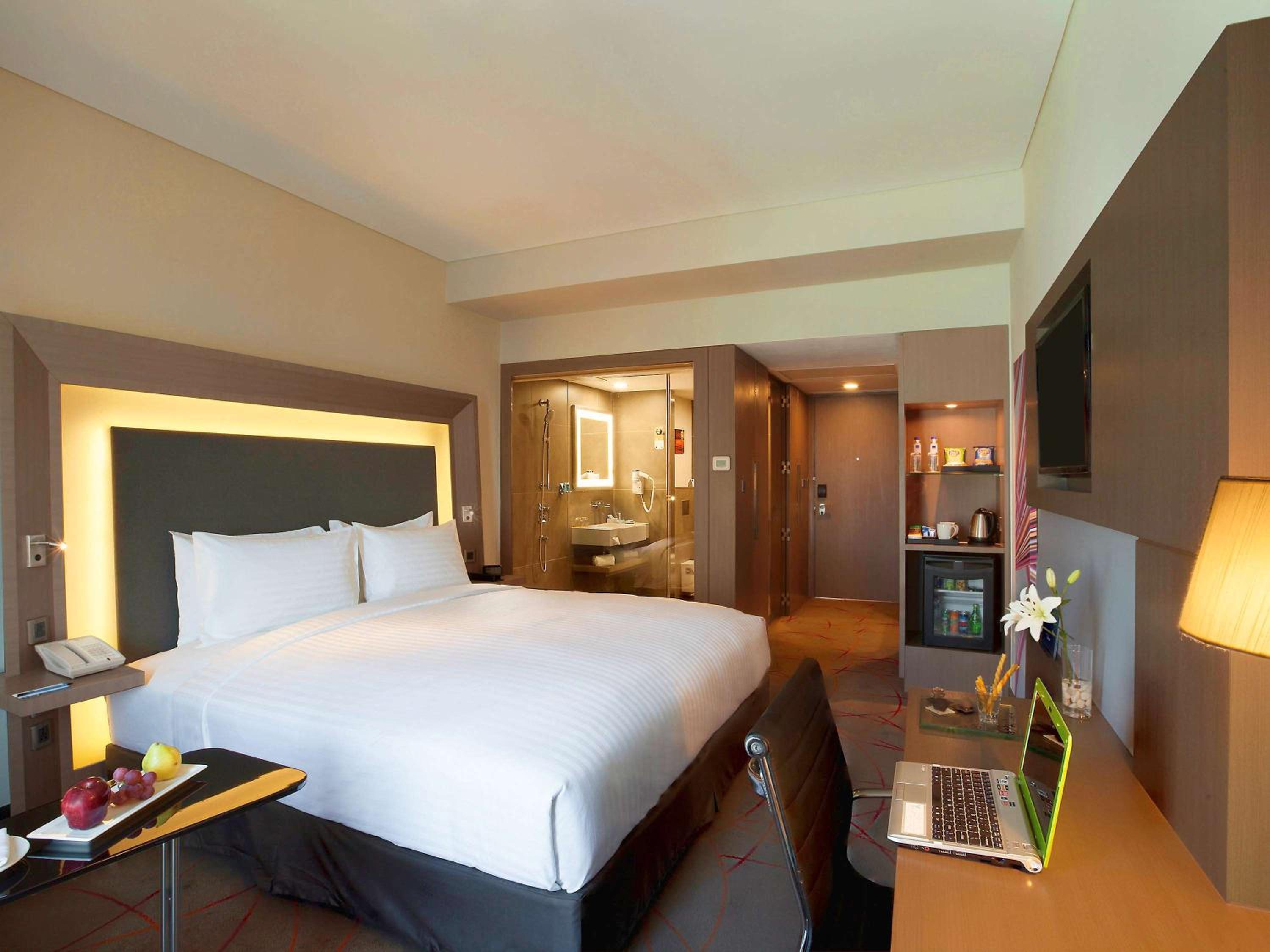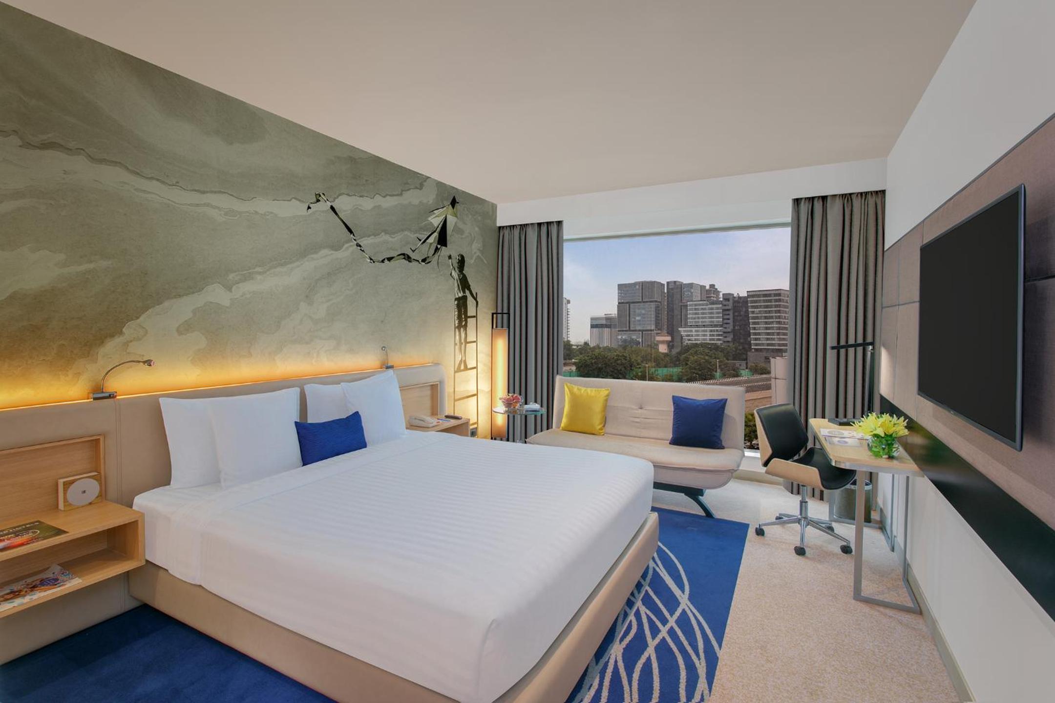 Novotel Ahmedabad offers contemporary 5-star accommodation in the heart of the city. The spacious rooms and suites with floor-to-ceiling windows provide a luxurious stay experience. Each room is equipped with a range of modern amenities including a flat-screen TV, electric kettle, and a work desk.