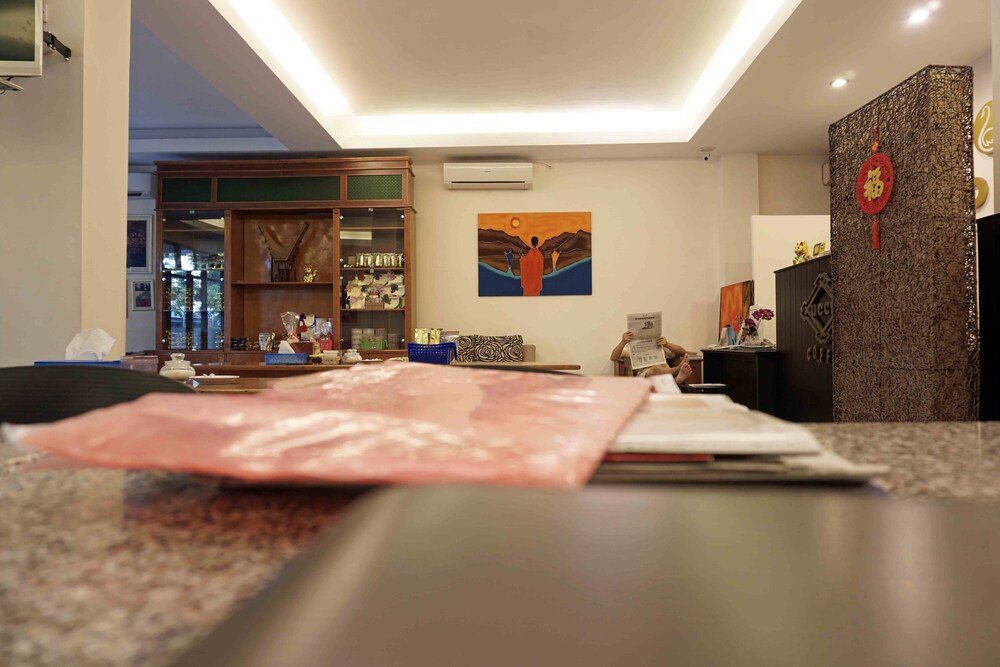 Stayed here to be close to the immigration office & airport as I needed to renew my visa and catch a flight. Hotel itself is fine but if you do not have transport it is impossible to hail a cab and there are just a couple of basic food places around. Hotel has free drinking water, which is great. Good for a night stay but don't get there early as nothing to do in the surrounding area. It can take a while to cross the busy highway - you just need to step out and hope traffic stops to get across to immigration! It's less than the minimum cab fare in a bluebird taxi so it will cost you 30,000 + 10,000 parking if you go to the airport. Hotel will call a cab for you which is very helpful. Breakfast was a large pork bun type thing, chinese owners / management at hotel. Good if you have business at immigration or need to be near the airport for a short time.