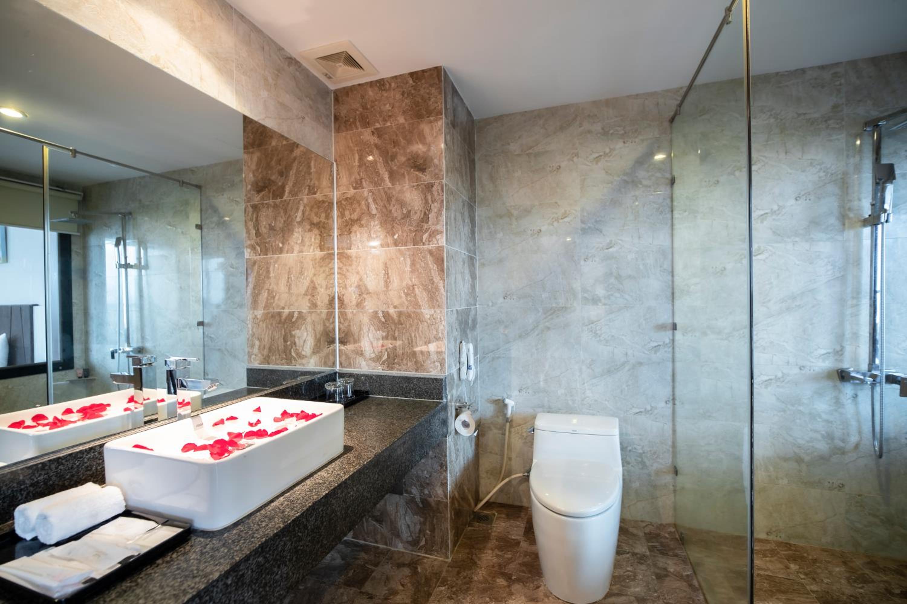 Indulge in a variety of dining experiences with 6 dining options available at the hotel. Relax and unwind at the indoor swimming pool or pamper yourself with a spa treatment. For entertainment, karaoke facilities on the 26th floor are perfect for a fun evening.