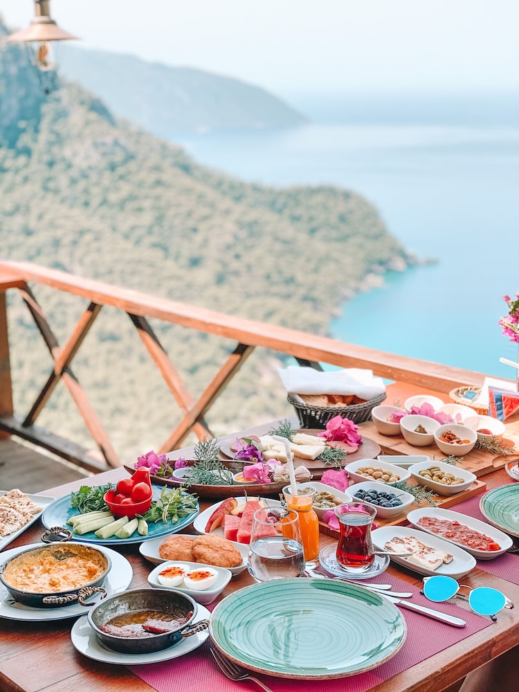 Although the journey there is almost perilous (on a road running along a sheer cliff) the reward is some of the most breathtaking views in Turkey. The property itself is quite comfortable and beautifully done, and our rate included an amazing breakfast and superb dinner with a surprising variety of foods on offer including very fresh fish (though the extra charges for Turkish wine are way too high). On the downside, although this is something of a nature retreat, they really need to deal with the insect problem -- during breakfasts and dinners, guests were bombarded by so many bees and wasps that they had to light individual bug coils on tables. Also, although lovely Kabak beach is about 10 minutes by van down a steep mountain road, the immediate property is fairly isolated, with almost nothing in walking distance. Still, after traveling extensively in Turkey, I'd highly recommend this place. Also, do consider that the rate, while it might seem high, probably includes a dinner you would easily pay quite a lot for otherwise, as well as a lovely breakfast (although I'd check the fine print to make sure it's included).