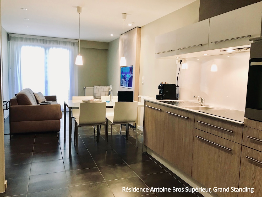Possibilité de manger au restaurant au RdC de la résidence et aussi de réserver et d'emporter des plats par manger dans l'appartement.
