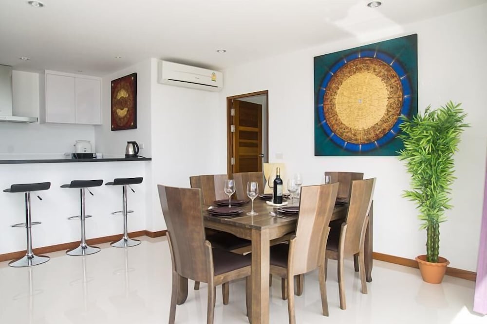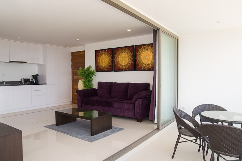 Very good place for a family holiday. Beautiful view from the windows and the balcony of the hotel. In 10 minutes walking the Macro supermarket is located, if you drive 5 minutes you will find the second supermarket TescoLotus. The hotel is on a hill, young people easily climb up to it, the elderly are better by car (parking is free). Nearby we found the best beach of all. Fish, crabs and snow-white sand. Do not forget the mask for diving.