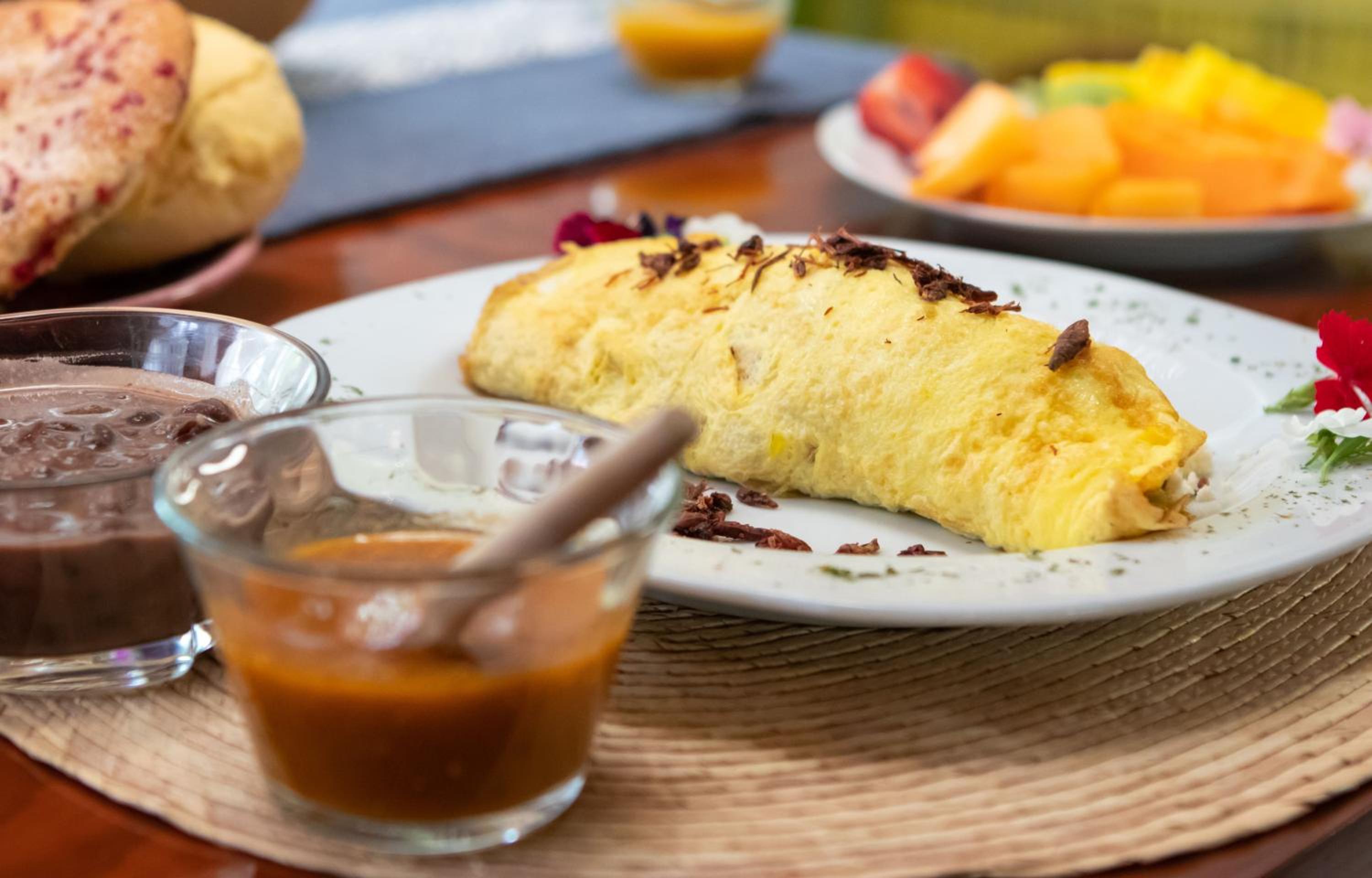 El desayuno ,hay un espacio sin embargo tienen problema con los cocineros solo 1 vez vi el restaurancito abierto pero muy basico chocolate,huevos y tamales