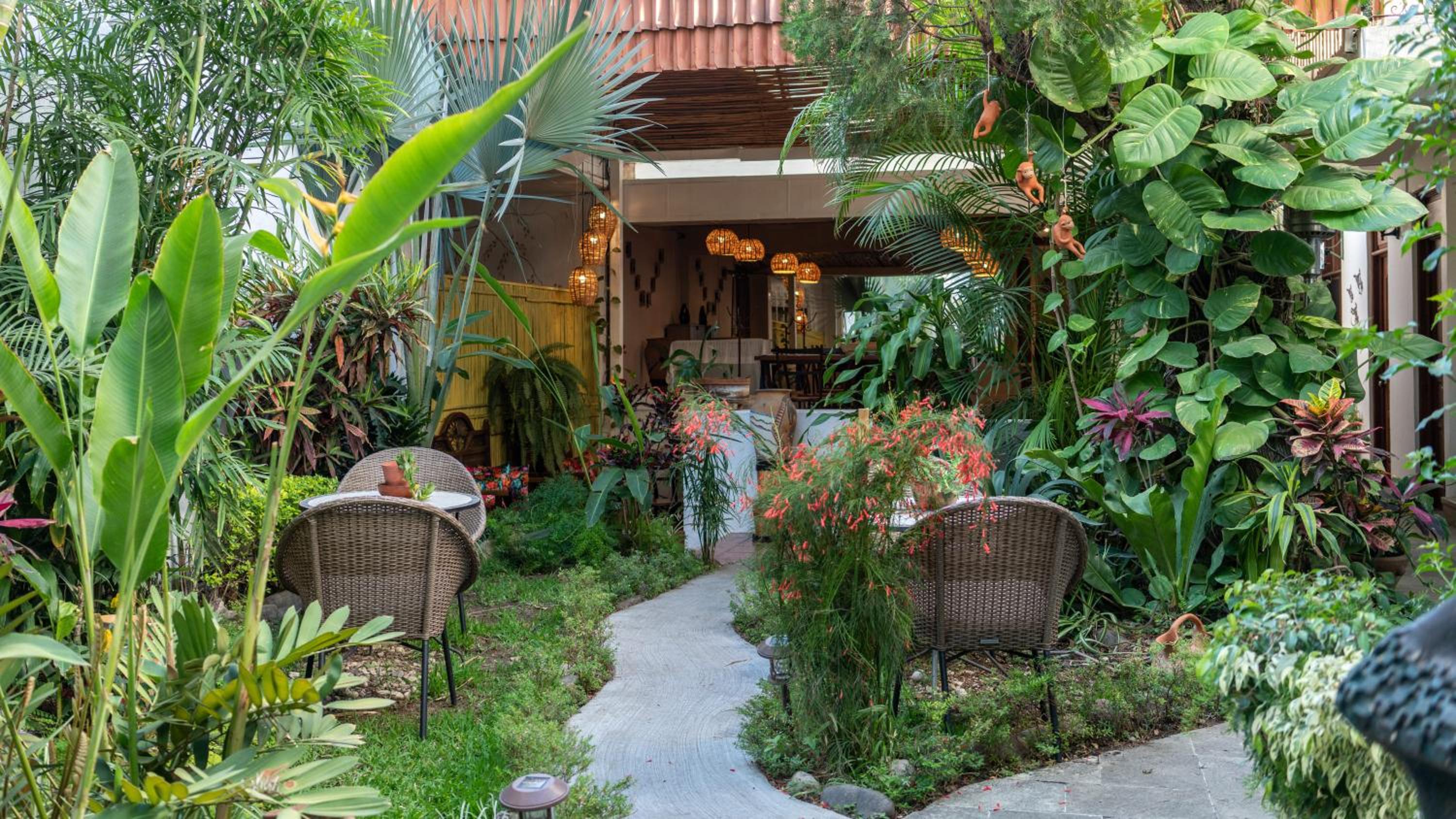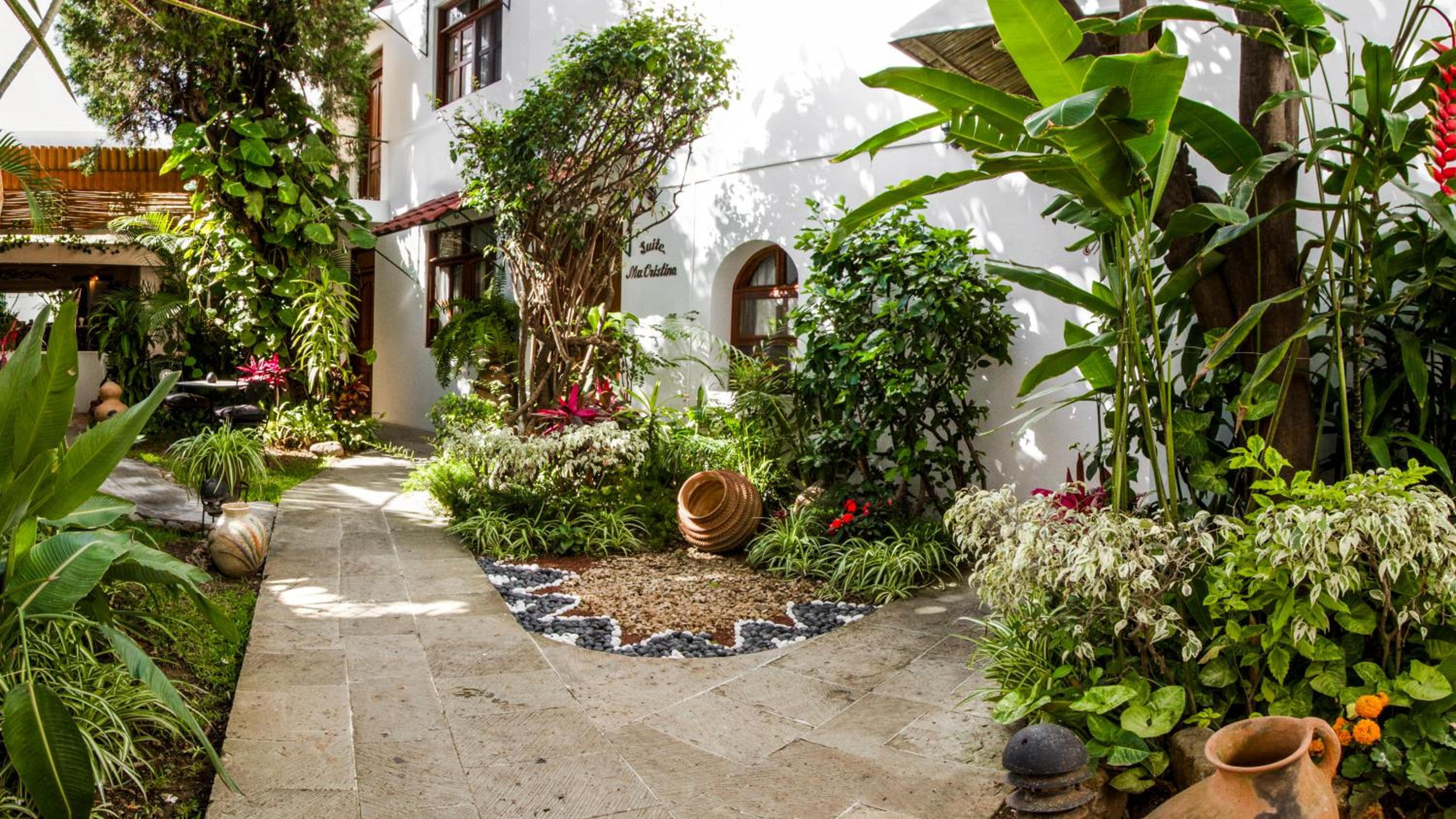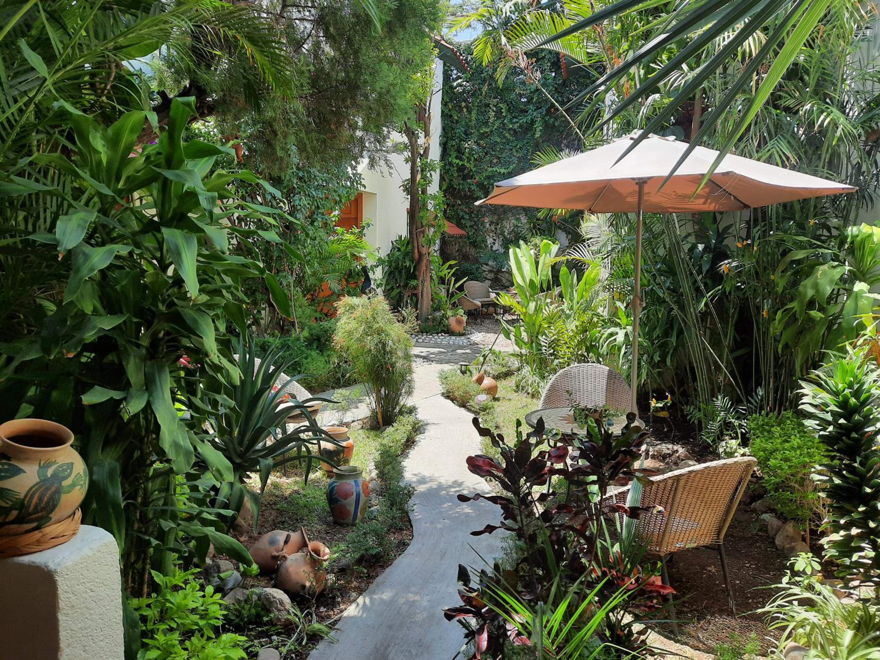 Indulge in hand-painted decor, comfortable bedding, and modern amenities like cable TV and coffee makers. Suites offer garden views and a cozy seating area.