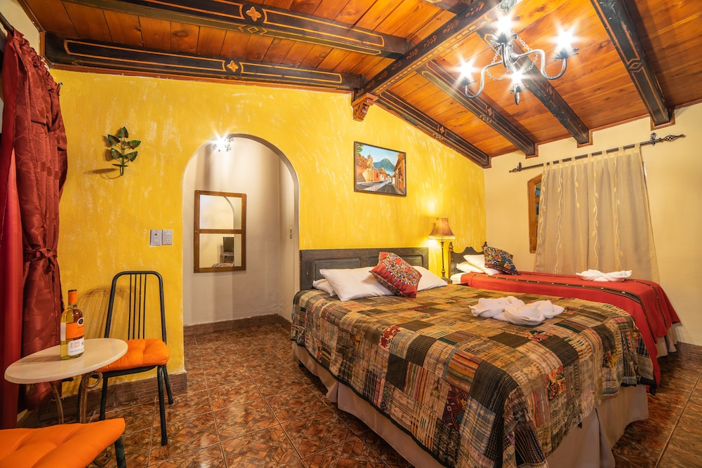 It's a fairly basic hotel but centrally located and the staff were very nice. No AC, no hot water faucet for the sink, some sloppy repairs in shower. Great rooftop terrace with panoramic views of the city including a view of Volcan de Fuego erupting in the distance. Lots of great food options nearby - Casa Escobar and Ta'Cool are right there with great food, cocktails and service!